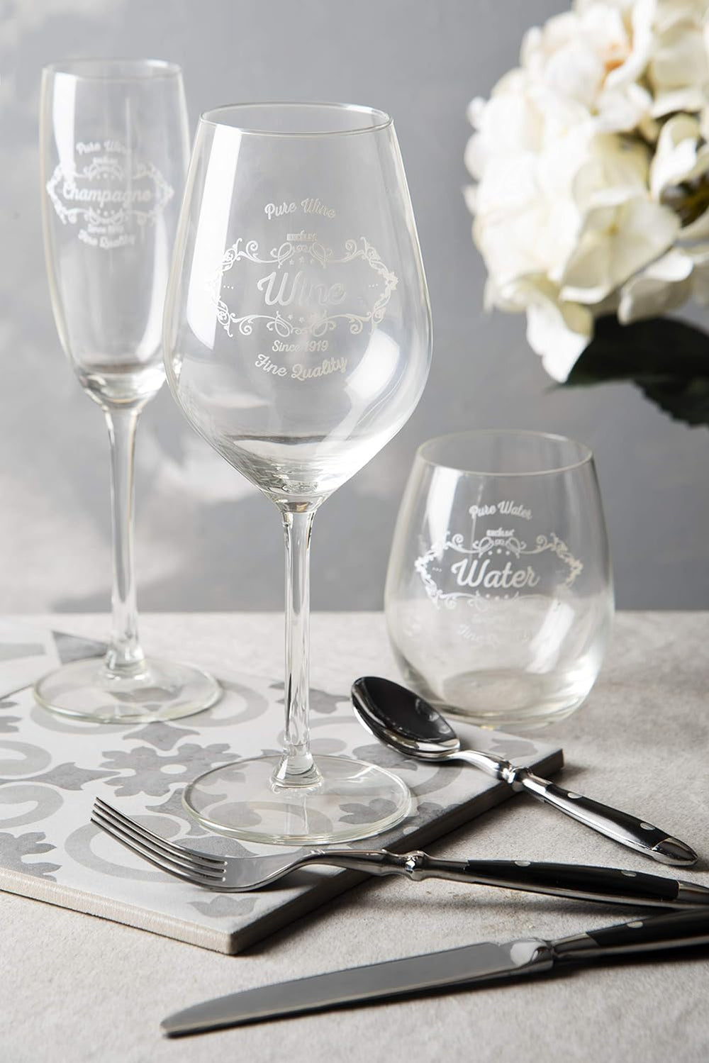 - Farbe: transparent mit weissen "Fine Quality" Ornamenten