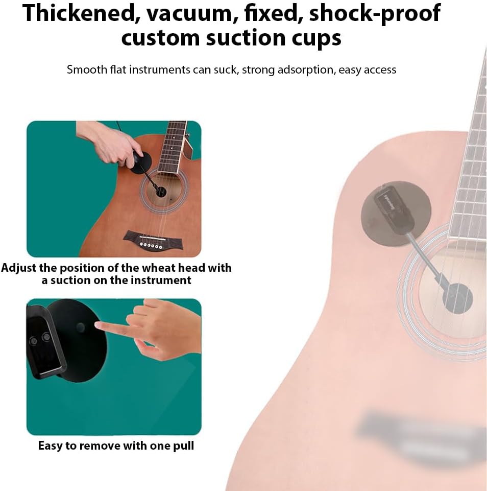 - 【Vielseitig und einfach zu bedienen】 Dieses Instrumentenmikrofon verfügt über ein Saugnapf-Design, mit dem es einfach an jeder glatten Oberfläche Ihres Musikinstruments befestigt werden kann. Egal, ob Sie Gitarre, Violine oder Akkordeon spielen,