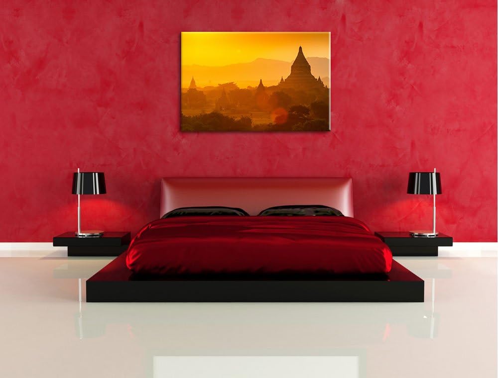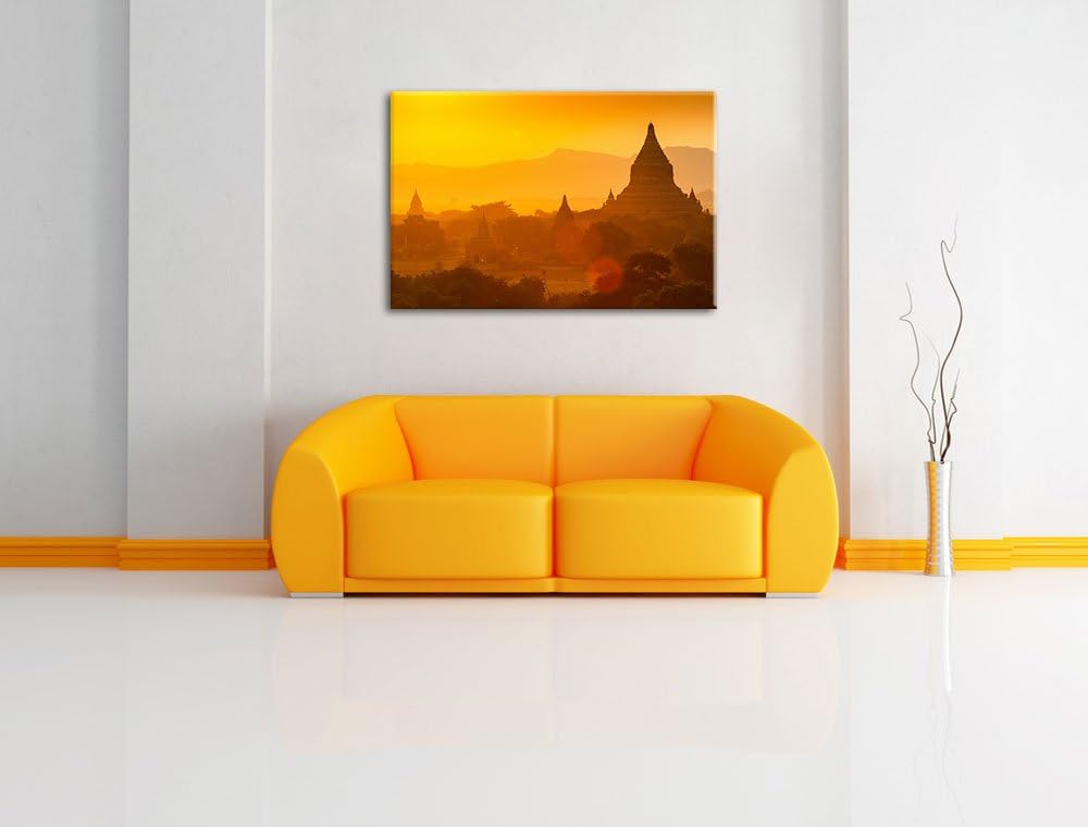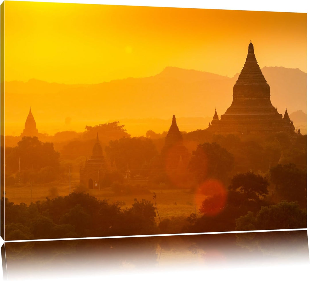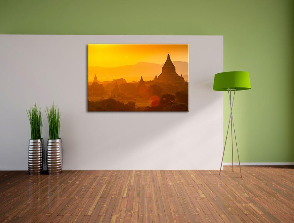 Buddha Tempel im Sonnenuntergang Format: 100x70 auf Leinwand, XXL riesige Bilder fertig gerahmt mit