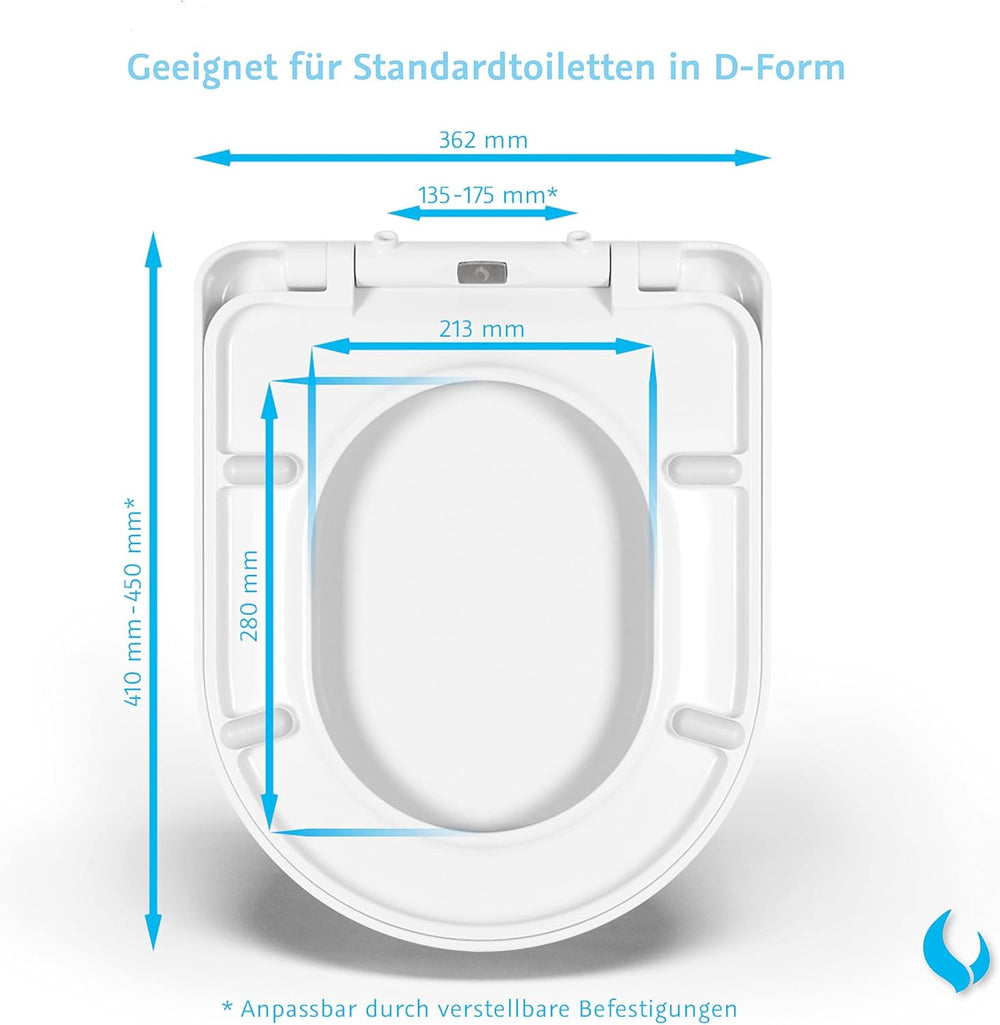 - 𝐒𝐎𝐅𝐓𝐂𝐋𝐎𝐒𝐄 – Genau das richtige für alle die eine knallende Klobrille nicht mehr hören können. Dieser Toilettensitz ist mit einer doppelten Softclose Absenkautomatik ausgestattet, der die Bewegungen des Deckels und der Brille auffangen, so dass dieser sanft und leise herunterklappt.