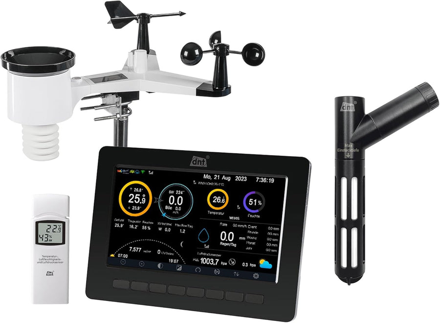 Bundle aus dnt WiFi-Wetterstation WeatherScreen PRO, Wetter- und Raumklima stets unter Kontrolle, Da