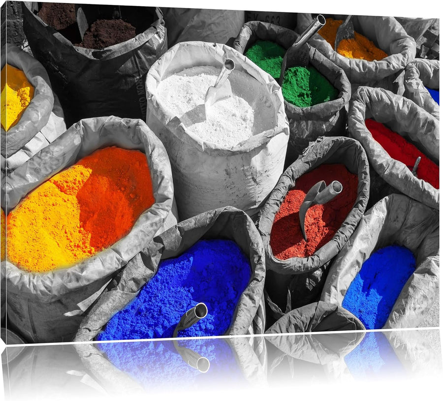 Bunte Farben für Holi Festival schwarz/weiss Format: 100x70 auf Leinwand, XXL riesige Bilder fertig