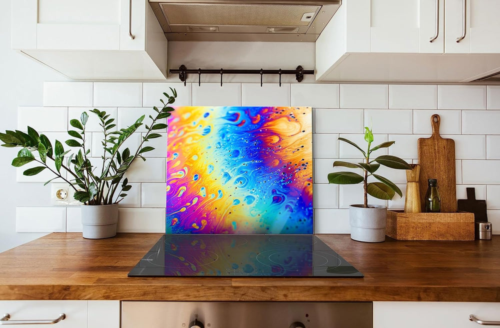 Bunte Farben Herdabdeckplatte & Spritzschutz aus Echtglas | Für Herd-Kochfelder | 60x52 cm