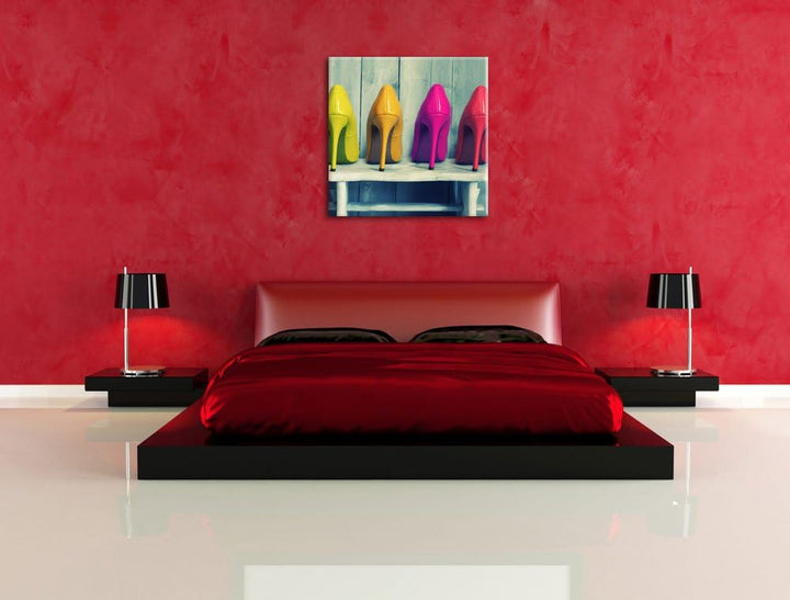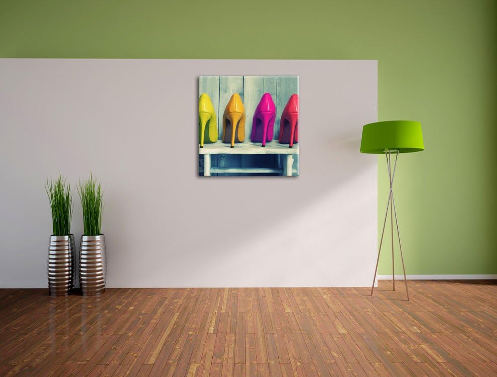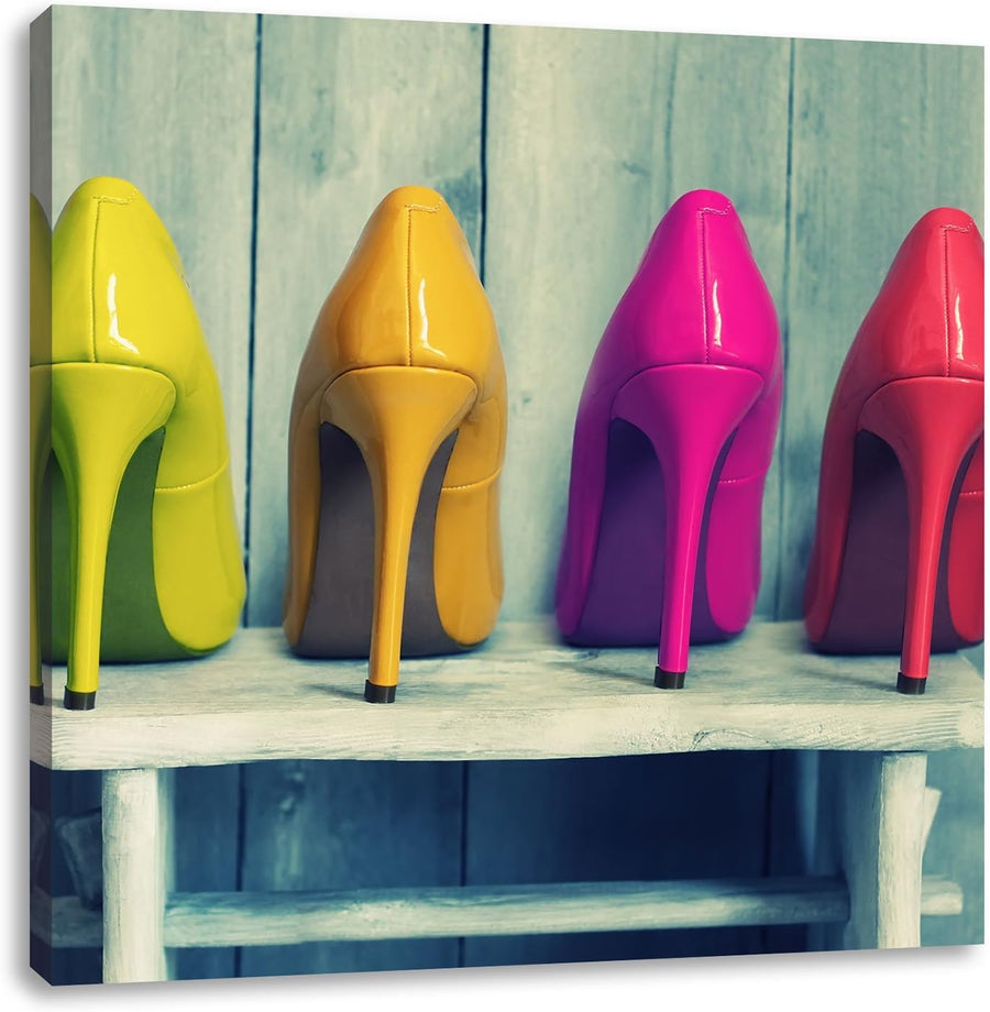 Bunte High Heels, Format: 70x70 auf Leinwand, XXL riesige Bilder fertig gerahmt mit Keilrahmen, Kuns