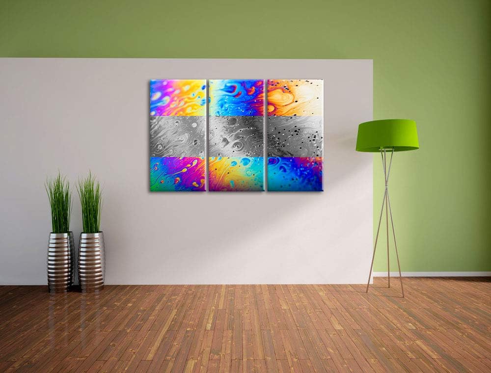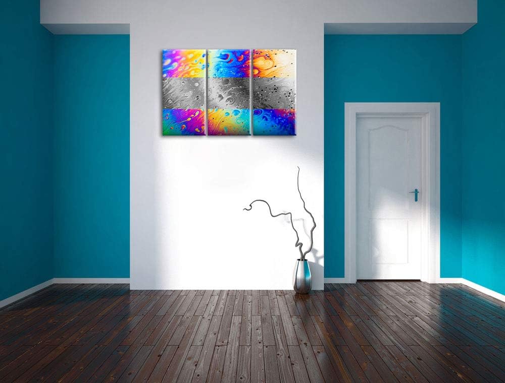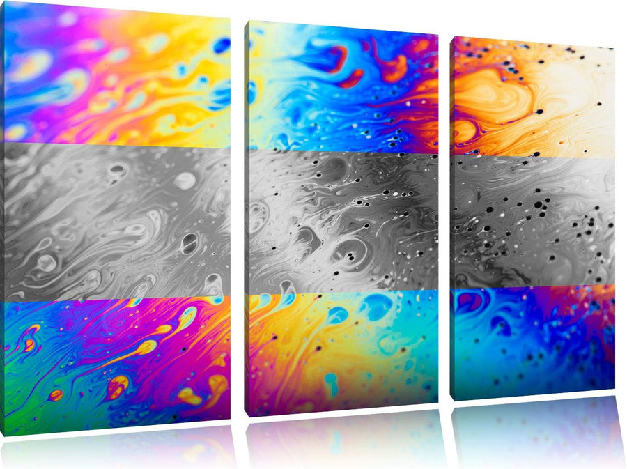 bunte Ölspritzer auf Glas schwarz/weiss 3-Teiler Leinwandbild 120x80 Bild auf Leinwand, XXL riesige