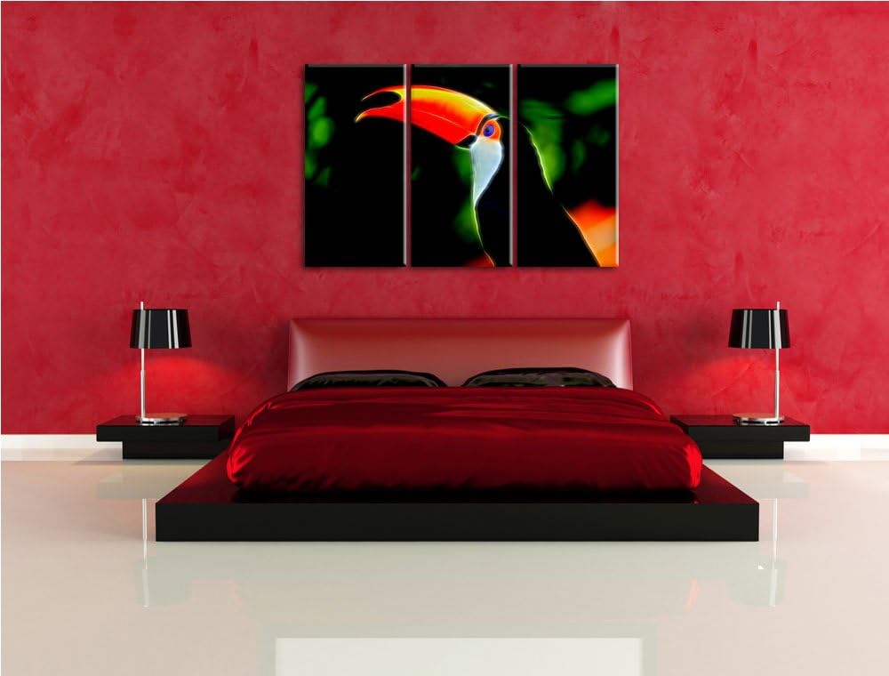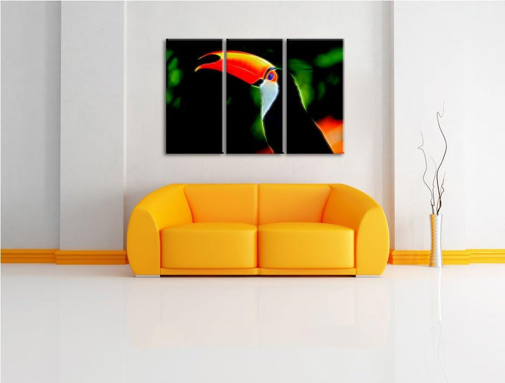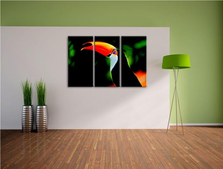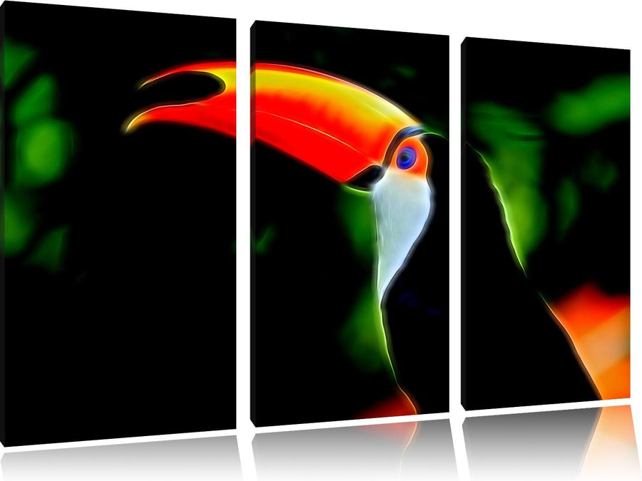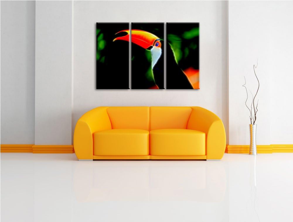 bunter Vogel im Dschungel3-Teiler Leinwandbild 120x80 Bild auf Leinwand, XXL riesige Bilder fertig g