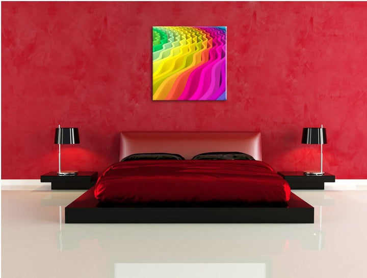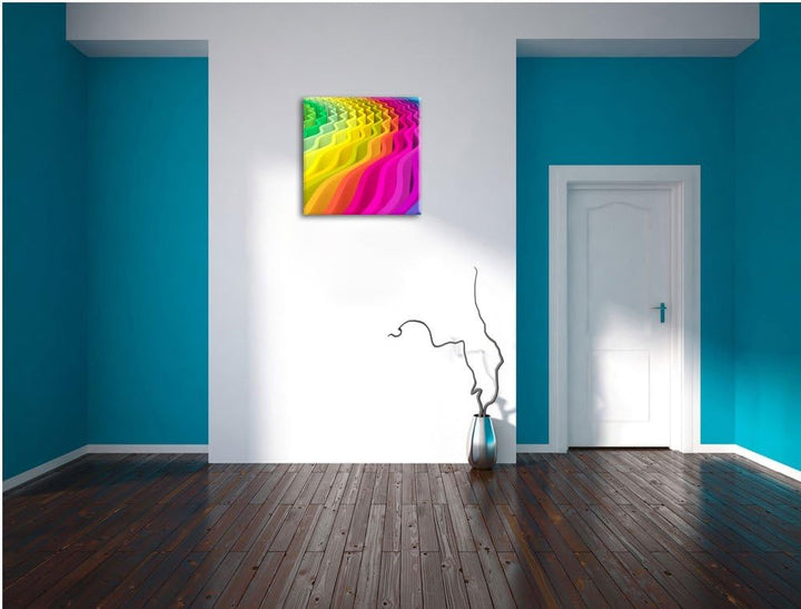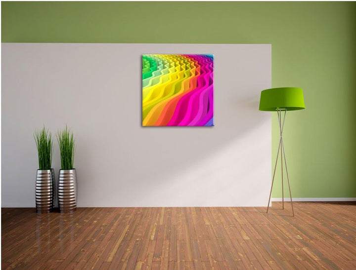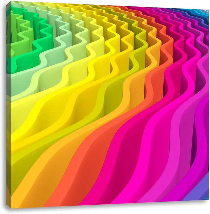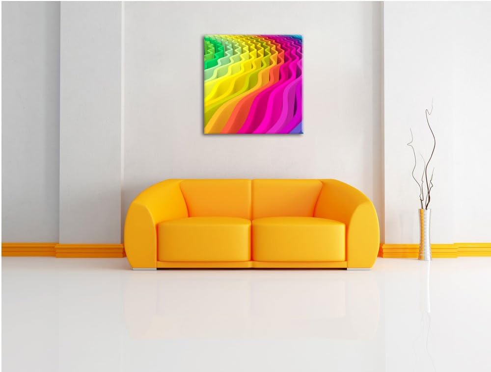 buntes Wellenmuster, Format: 70x70 auf Leinwand, XXL riesige Bilder fertig gerahmt mit Keilrahmen, K