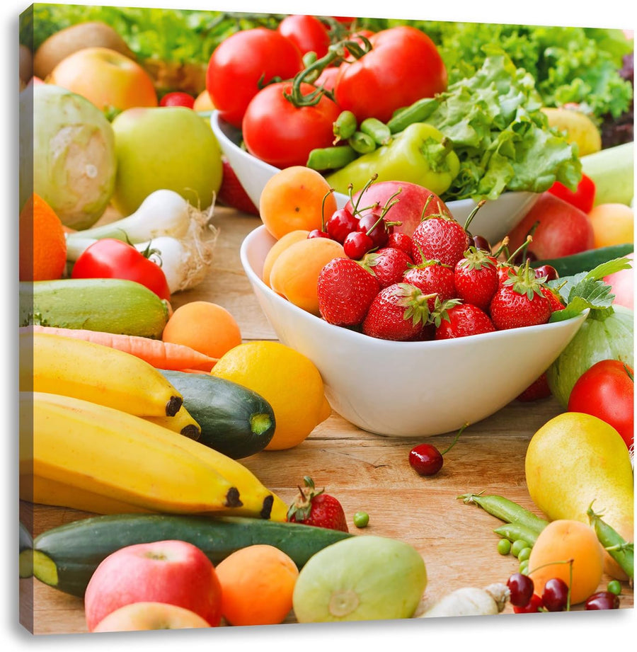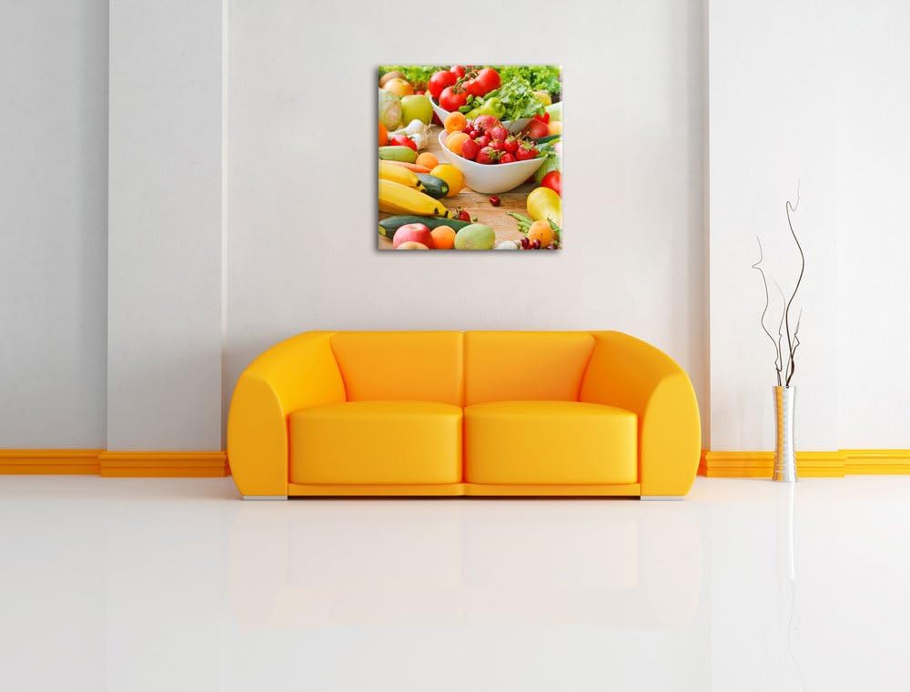 Buntes Obst und Gemüse, Format: 70x70 auf Leinwand, XXL riesige Bilder fertig gerahmt mit Keilrahmen