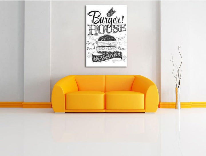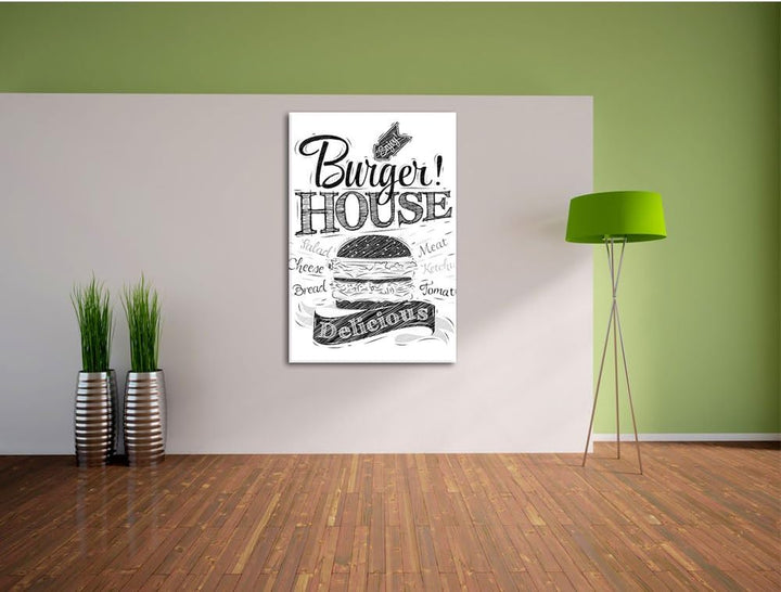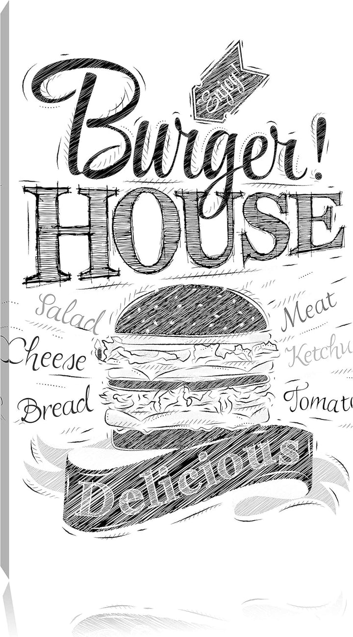 Burger House Schwarz/Weiss, Format: 100x70 auf Leinwand, XXL riesige Bilder fertig gerahmt mit Keilr