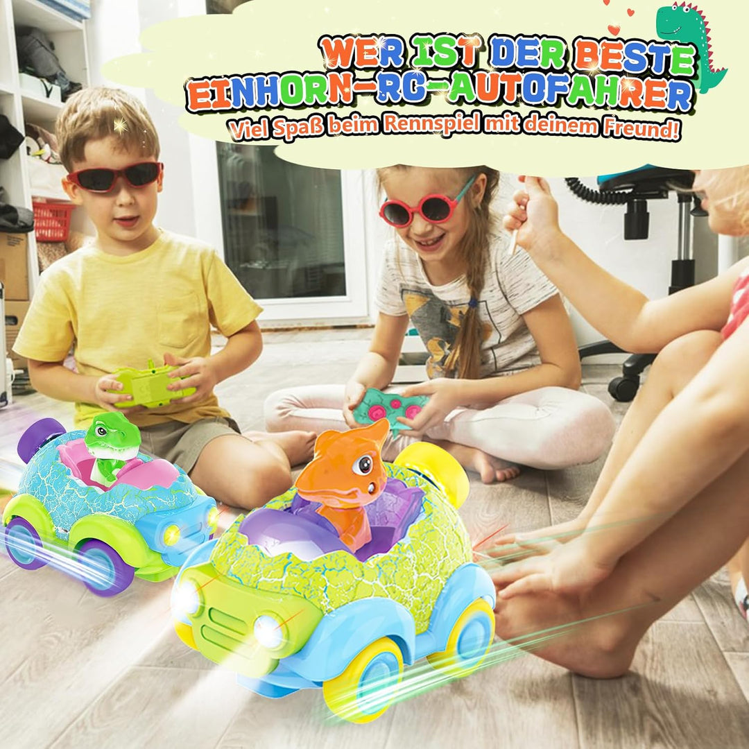 - 【Kann Gleichzeitig Spielen】 Dieses produkt enthält zwei verschiedene ferngesteuerte autos, diese dino rc auto mit 2,4 GHz fernbedienungstechnologie, kann mehr als ein spielzeugauto zur gleichen zeit zu spielen, ohne sich gegenseitig zu stören,