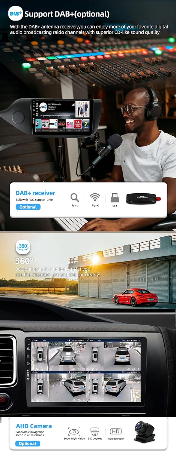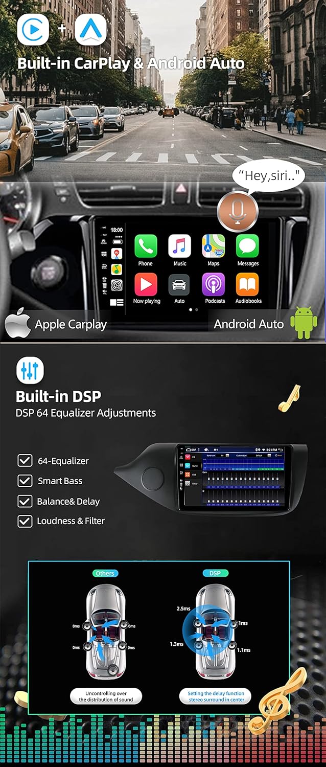 - 【DSP - CARPLAY - ANDROID AUTO】 DSP verfügt über einen vollständig digitalen Prozessorchip und einen 64-Bit-Doppelpräzisionsmodus. Geniessen Sie je nach Bedarf VIP-Soundeffekte an verschiedenen Orten. Integriertes drahtloses Carplay und Android