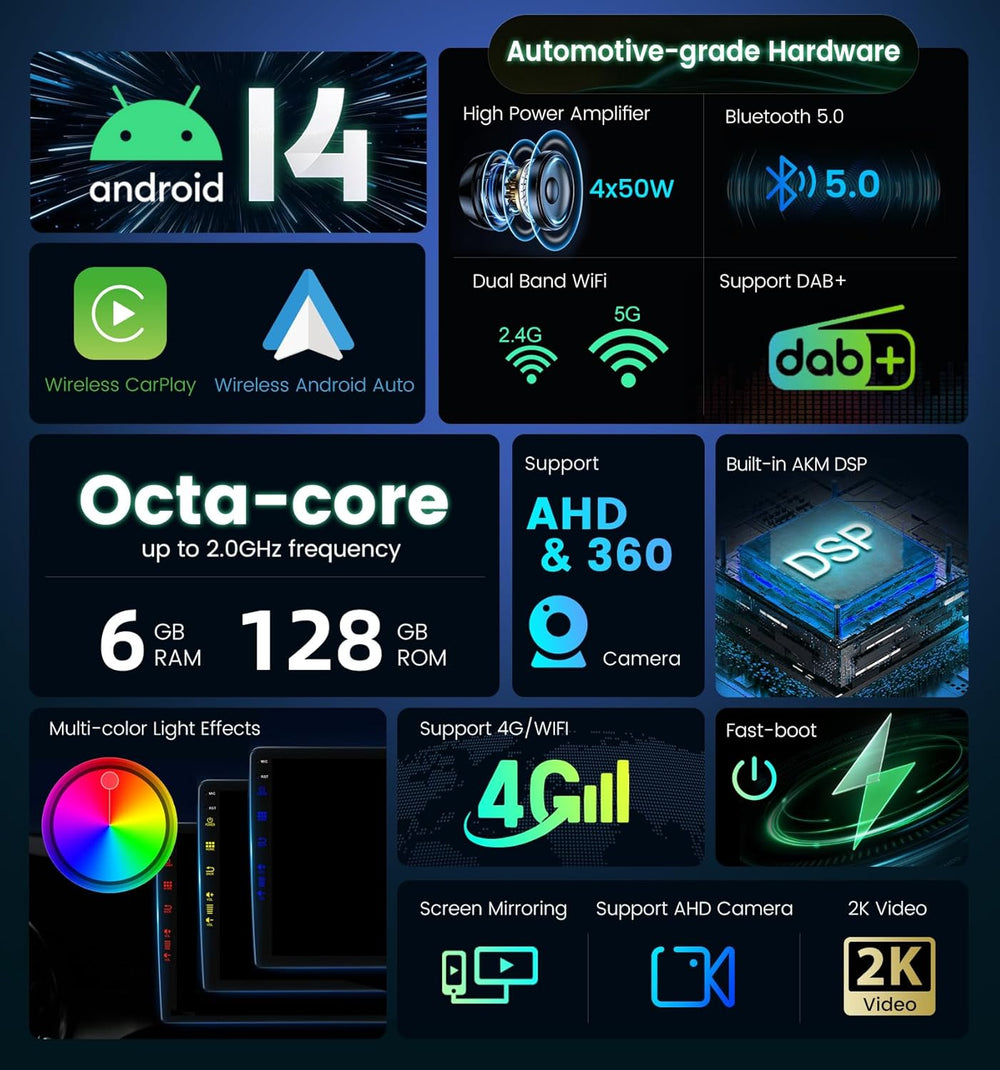 - 【DSP - CARPLAY - ANDROID AUTO】 DSP verfügt über einen vollständig digitalen Prozessorchip und einen 64-Bit-Doppelpräzisionsmodus. Geniessen Sie je nach Bedarf VIP-Soundeffekte an verschiedenen Orten. Integriertes drahtloses Carplay und Android