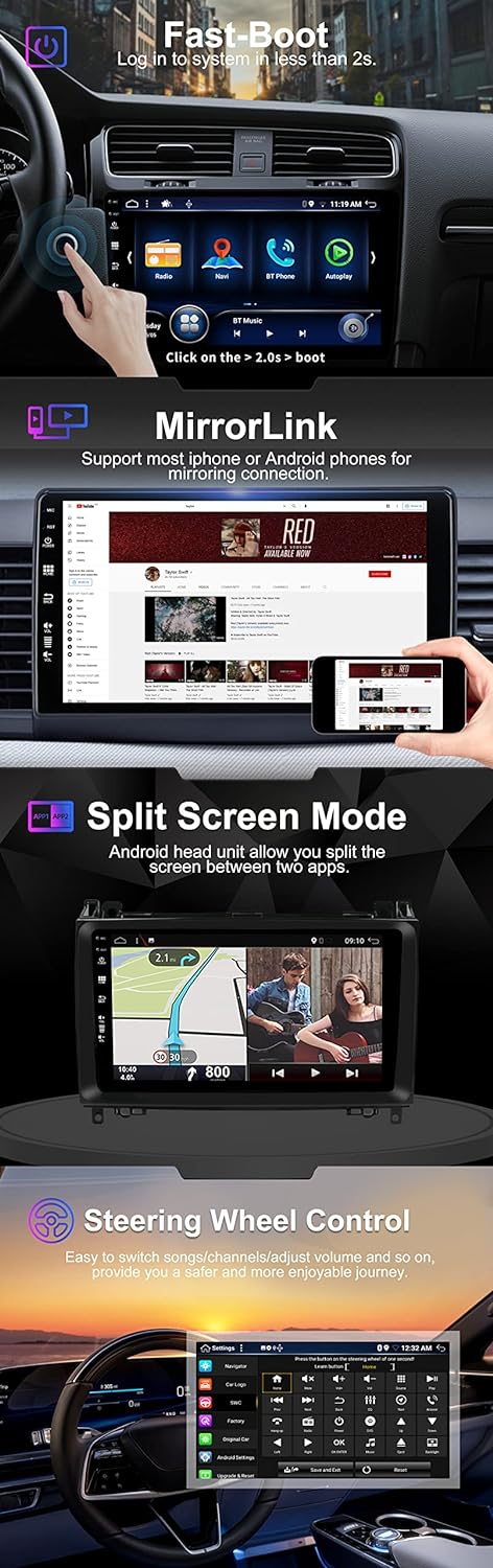 - 【FAST BOOT - 360° KAMERA】① Greifen Sie in weniger als 2 Sekunden auf das System zu, um die Bootzeit des Android-Systems von 25 auf nur 2 Sekunden zu beschleunigen, ist nie einfach. ②Die 360°-Panoramaparkfunktion lässt Sie die Lage um das Auto
