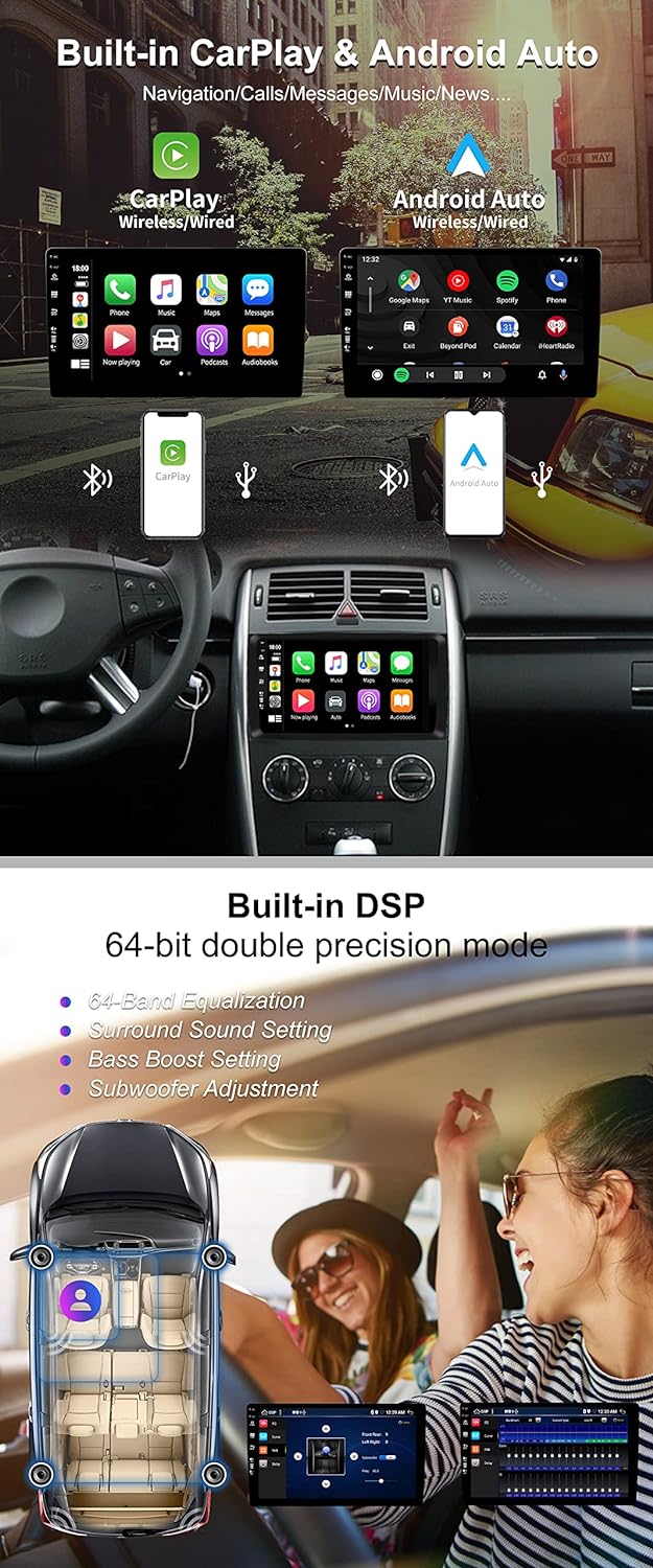 - 【DRAHTLOSES CARPLAY - ANDROID AUTO - DSP】①Integriertes drahtloses Carplay und Android Auto, unterstützt Funktionen Ihres Smartphones für die Verwendung im Auto, z. Sprachsteuerung mit Android Auto, Musikwiedergabe, Navigation, Telefonanrufe und