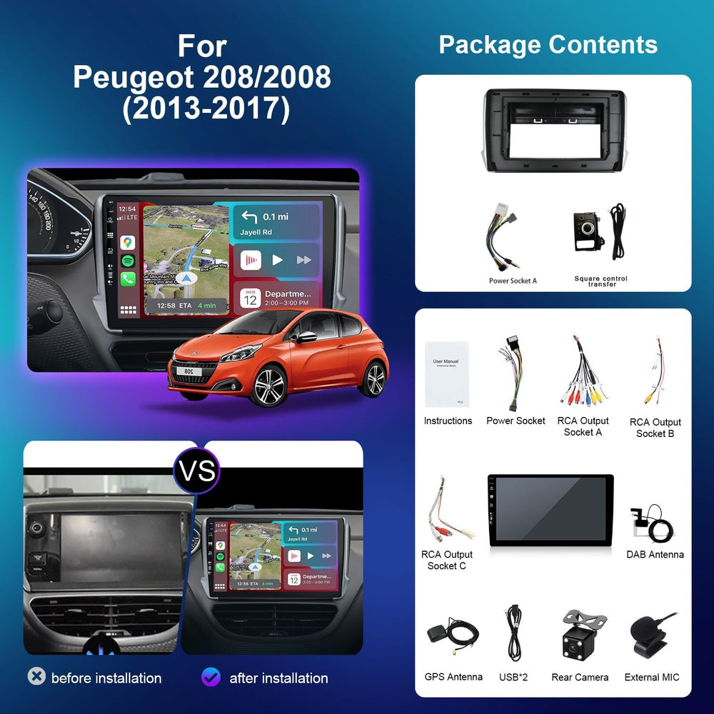 - 【 AUTOMODELLE 】 Perfekt kompatibel mit Peugeot 208 / 2008 (2012-2018). Bitte kontaktieren Sie uns für Hilfe mit Bildern des Armaturenbretts unter Contact:joyx_techsupport@163.com