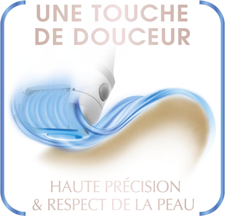 • Die Technologie von Skin Respect: Ultraweiche Oberfläche für eine optimale Gleitung, Pinzetten aus hygienischem Edelstahl, optimale Rotationsgeschwindigkeit, Massagesystem, entspannende Rollen für ein besseres Gleiten und weniger Hautirritationen.