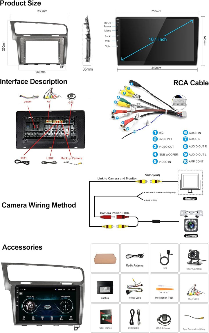 - 🔆【Android Autoradio Doppel Din】Android 10 Radio für VW Golf 7/VII (Jahre: 2013,2014,2015,2016,2017,2018). Unser Produkt wird geliefert mit: silbergrauem Montagerahmen + Autoradio mit 10,1 Zoll-Bildschirm + externem Mikrofon + HD-Rückfahrkamera