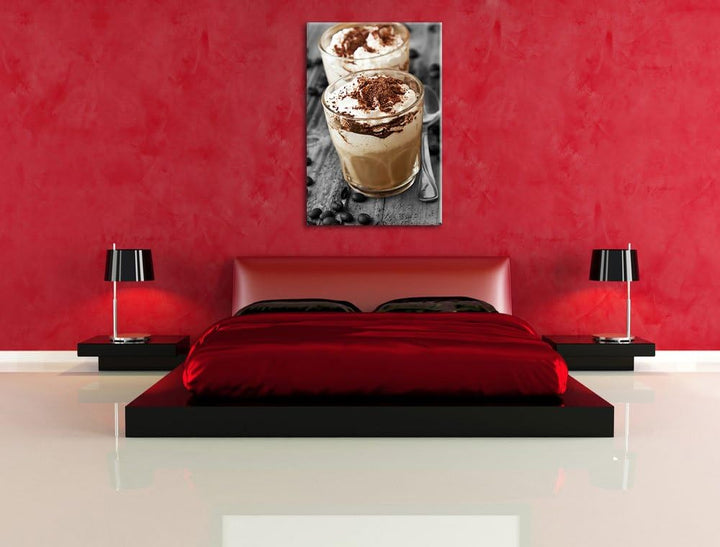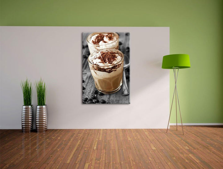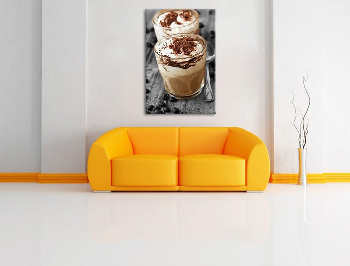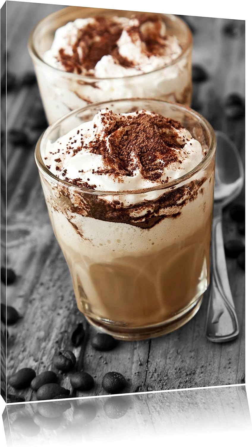 Cappuccino mit Sahne und Schokostreuseln schwarz/weiss Format: 100x70 auf Leinwand, XXL riesige Bild