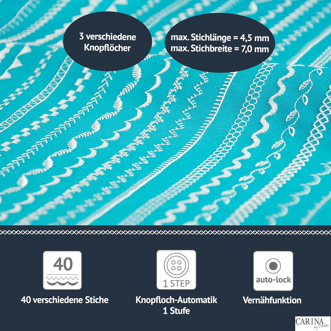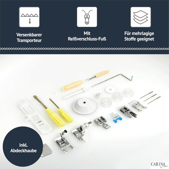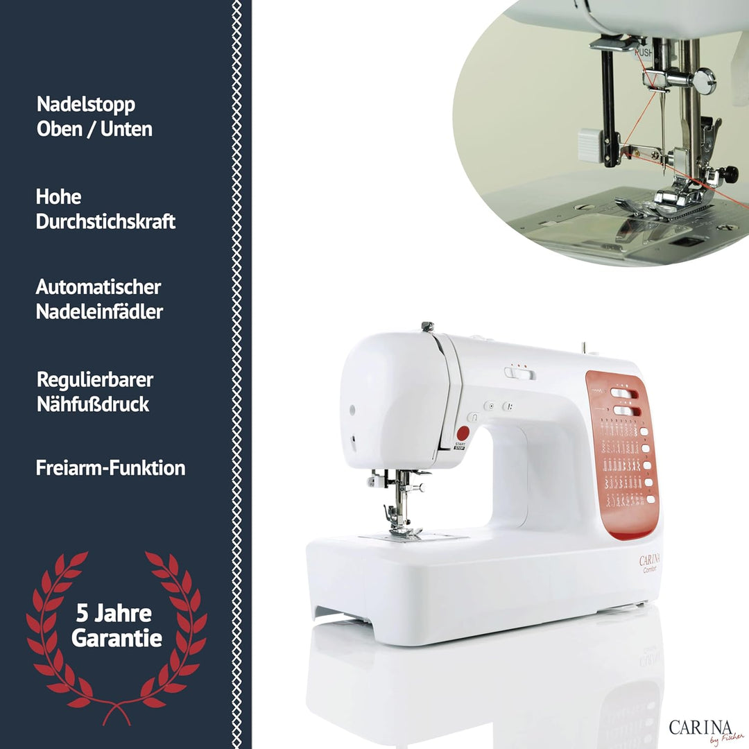 - VOLLAUTOMATISCH: Die Nähmaschine Carina Comfort mit Direktwahltasten geht über die Funktionalität einer Einsteigermaschine hinaus und überzeugt mit tollen Näh-Ergebnissen und funktionellen Extras