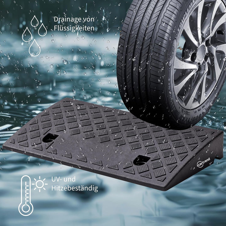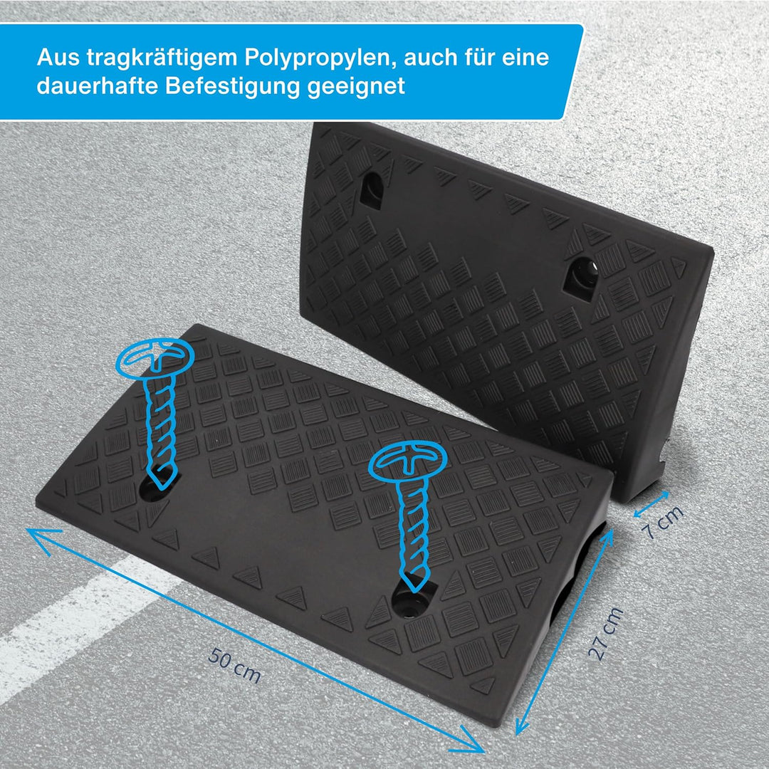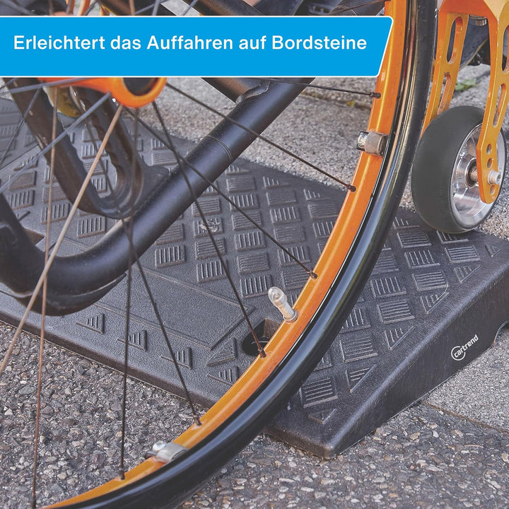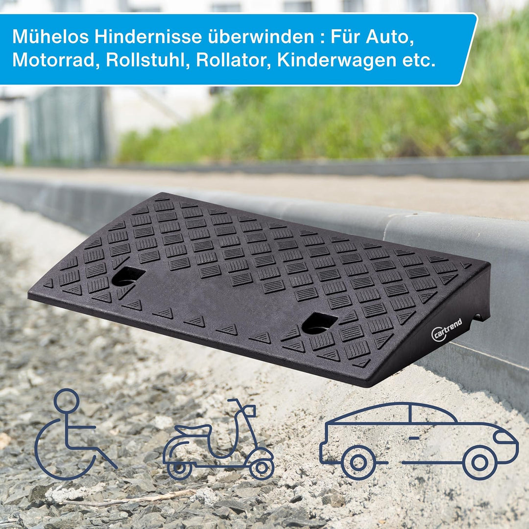 - Mit Hilfe der Bordsteinrampe können Erhöhungen leichter und schonender überquert werden. Ihre Alufelgen werden geschont und bleiben unbeschädigt, das Befahren wird erleichtert. Ideal für stark frequentierte Bordsteinkanten, Einfahrten, Stufen, Türschwellen und andere Absätze in Indoor- und Outdoorbereichen
