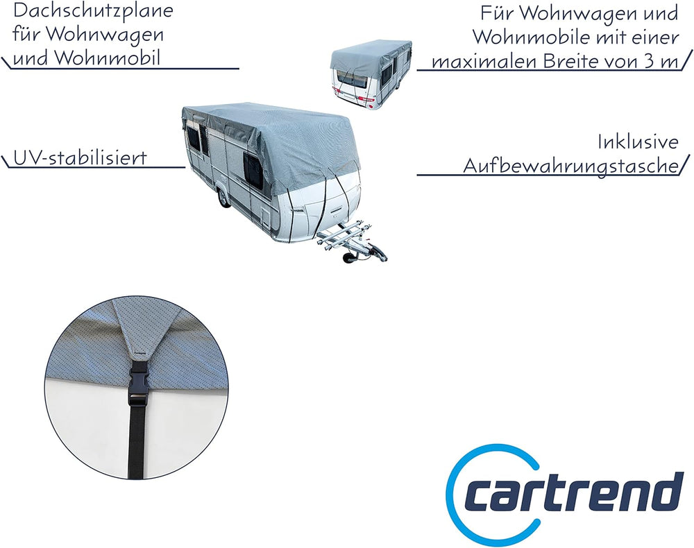 - SCHRÄNKT NUTZUNG NICHT EIN: Die cartrend Dachschutzplane schränkt die Nutzbarkeit des Wohnwagens oder des Wohnanhängers nicht ein