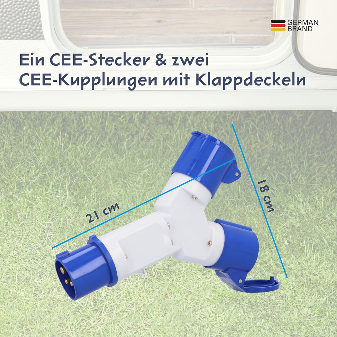 - IDEAL: Ausgestattet mit einem CEE-Stecker und zwei CEE-Kupplungen, jeweils versehen mit Klappdeckeln