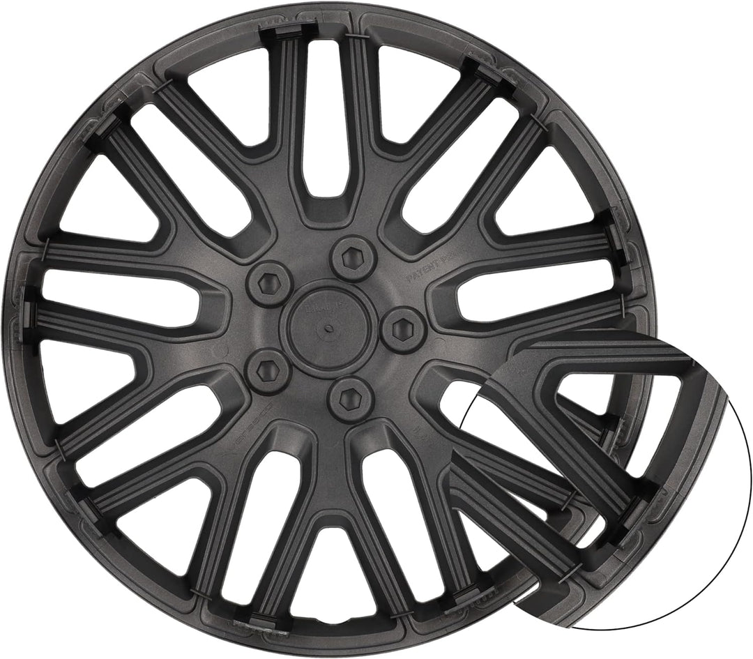 - SICHER: Ein gefederter Metallring im Inneren sorgt für einen festen und dauerhaften Sitz der Radzierblende: Die Fertigung der Radzierblenden erfolgt in Europa. So entstehen qualitativ hochwertige Radkappen