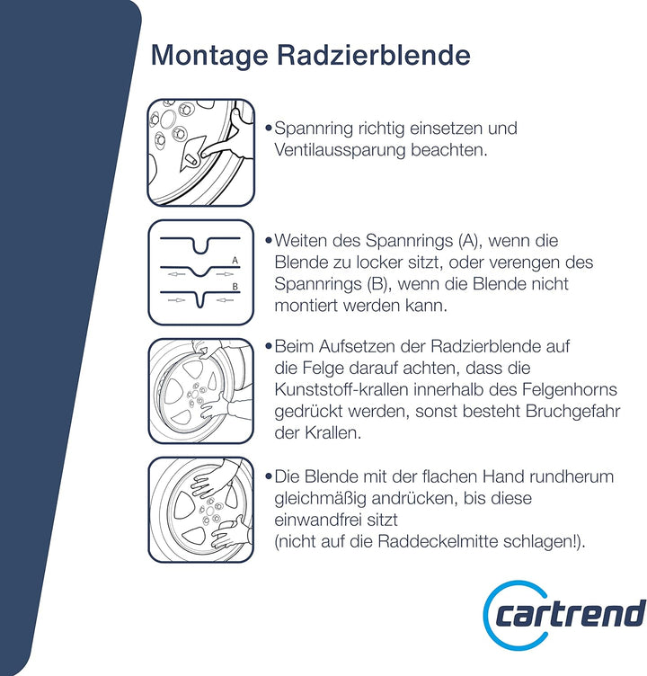 • BRUCHFEST: Die cartrend Radkappen sind aus ABS-Qualitätskunststoff gefertigt und somit besonders bruchfest
