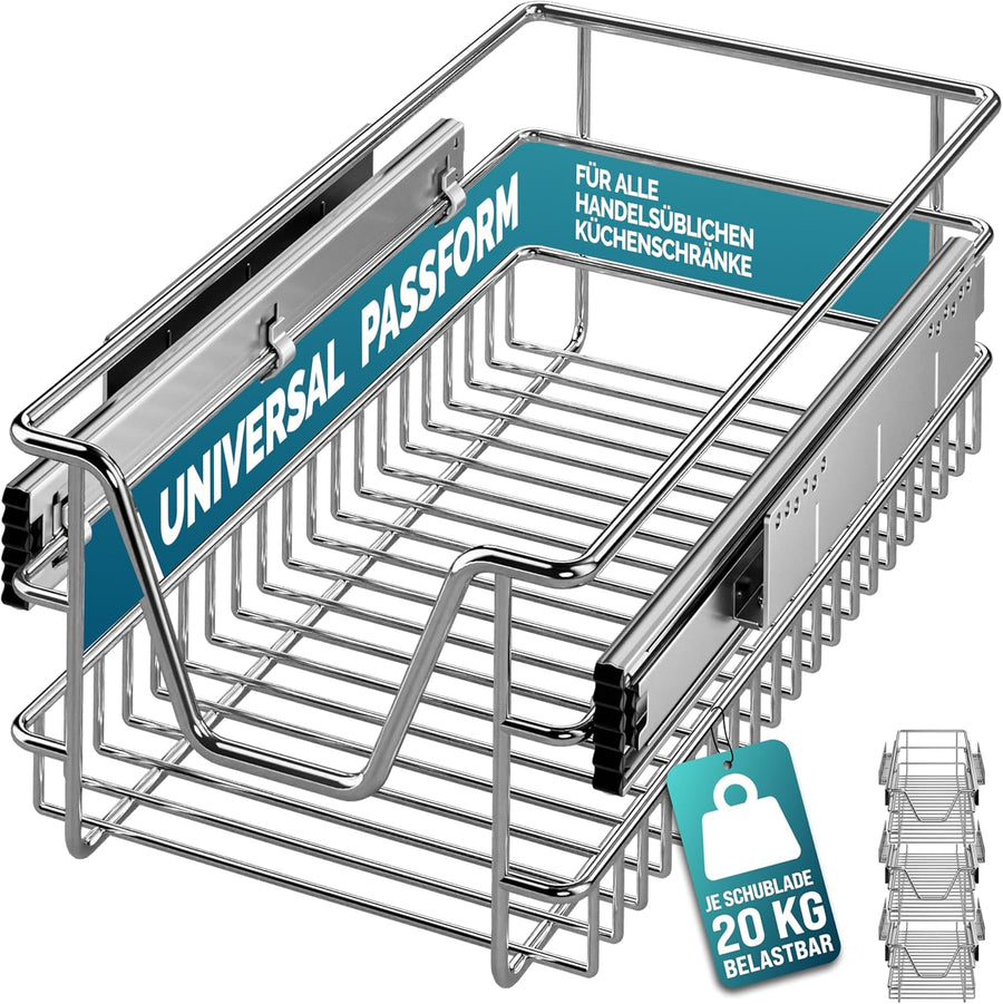 - STABIL & BELASTBAR - Der robuste Schrankauszug aus verchromtem Metall trägt bis zu 20 kg. Verzinkte Führungsschienen sorgen für eine langlebige Nutzung. Inklusive 6 Schrauben für eine schnelle Montage.