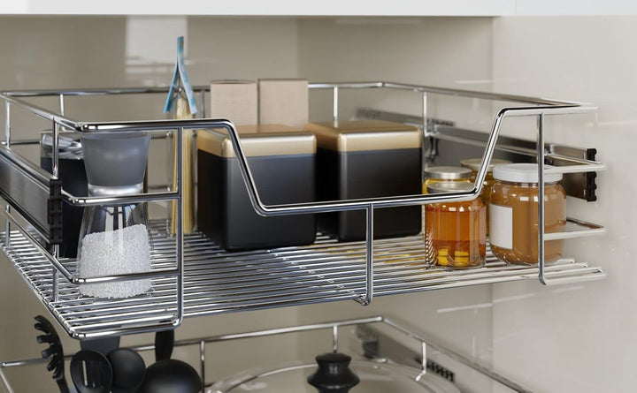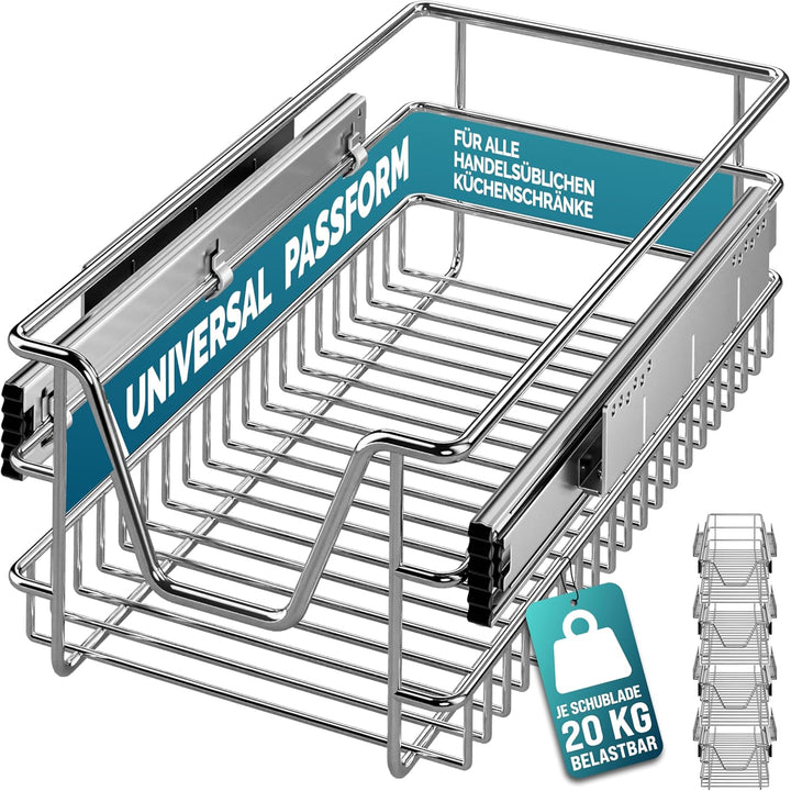 • STABIL & BELASTBAR - Der robuste Schrankauszug aus verchromtem Metall trägt bis zu 25 kg. Verzinkte Führungsschienen sorgen für eine langlebige Nutzung. Inklusive 6 Schrauben für eine schnelle Montage.
