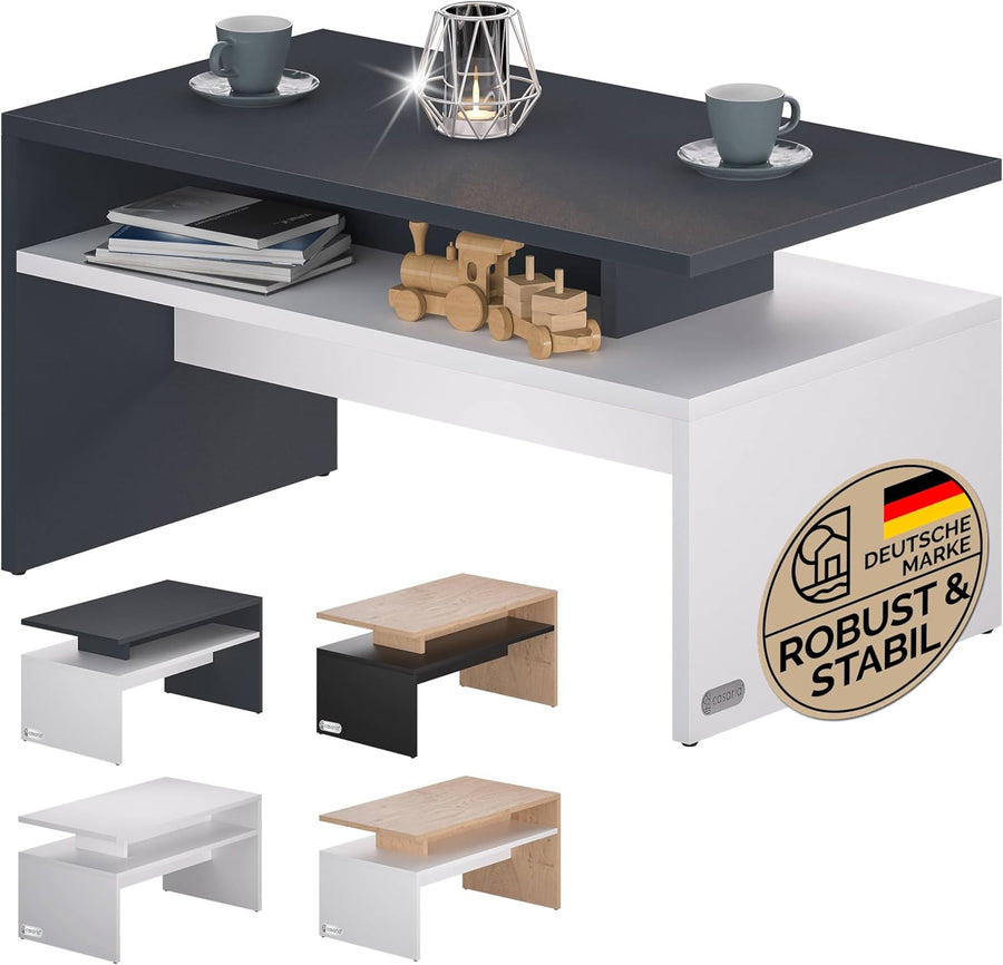 - ROBUST & STANDFEST - Der Kaffeetisch ist aus einer 15mm dicken Spanplatte gefertigt und dadurch sehr stabil, langlebig und kann mit insgesamt 50kg belastet werden. 4 Kunststofffüsse verhindern ein Verkratzen deiner Böden. So schaffst du eine moderne