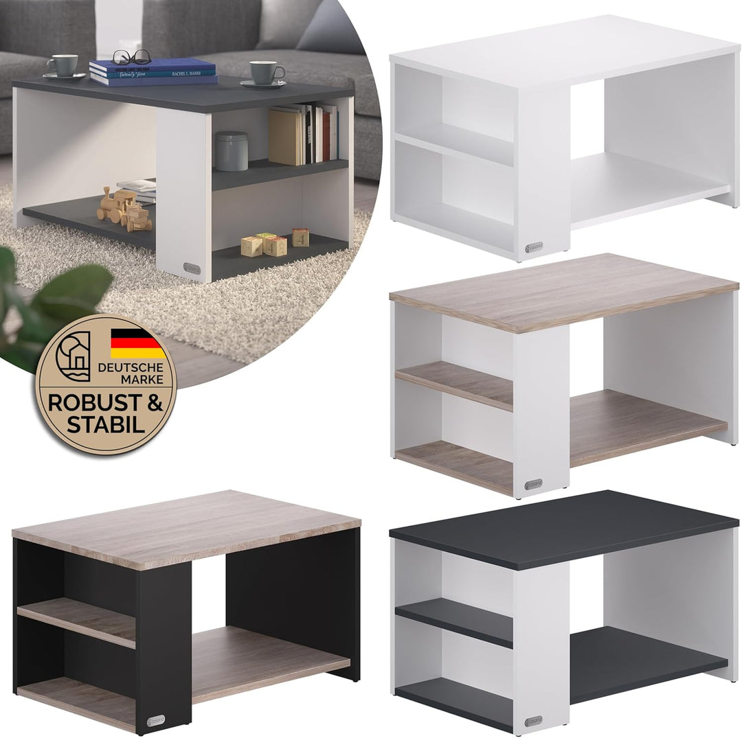 - ROBUST & STANDFEST - Der Kaffeetisch ist aus einer 15mm dicken Spanplatte gefertigt und dadurch sehr stabil, langlebig und kann mit insgesamt 50kg belastet werden. Für eine rutschfesten Stand sorgen 4 Kunststofffüsse, die zusätzlich deinen Boden