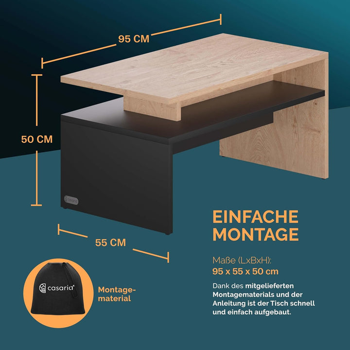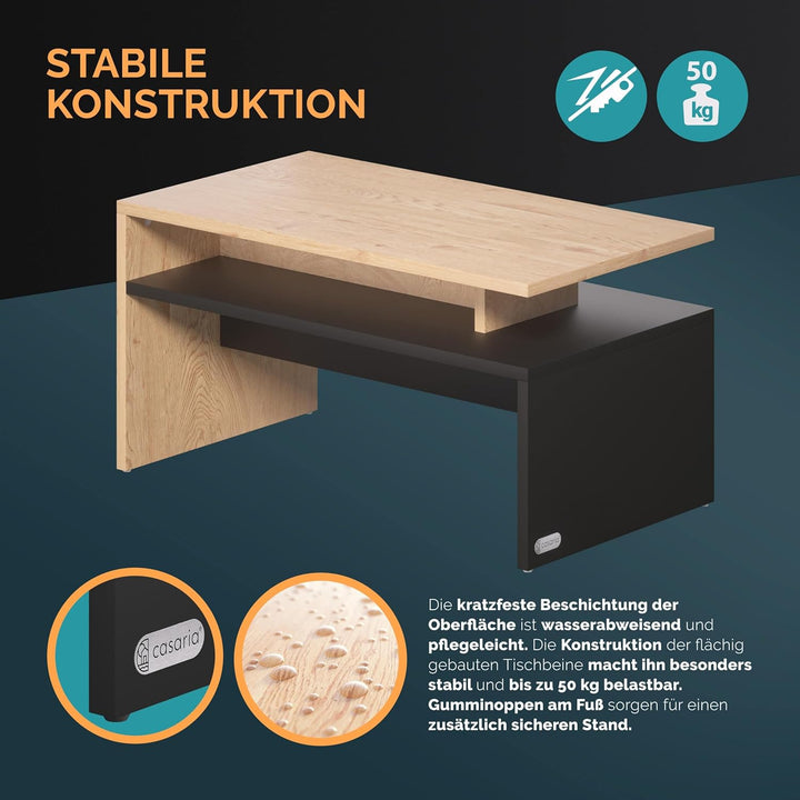 Casaria® Couchtisch mit Ablage Stauraum 92x51x48 cm Kratzfest 50 kg Belastbarkeit Modern Gross Wohnz
