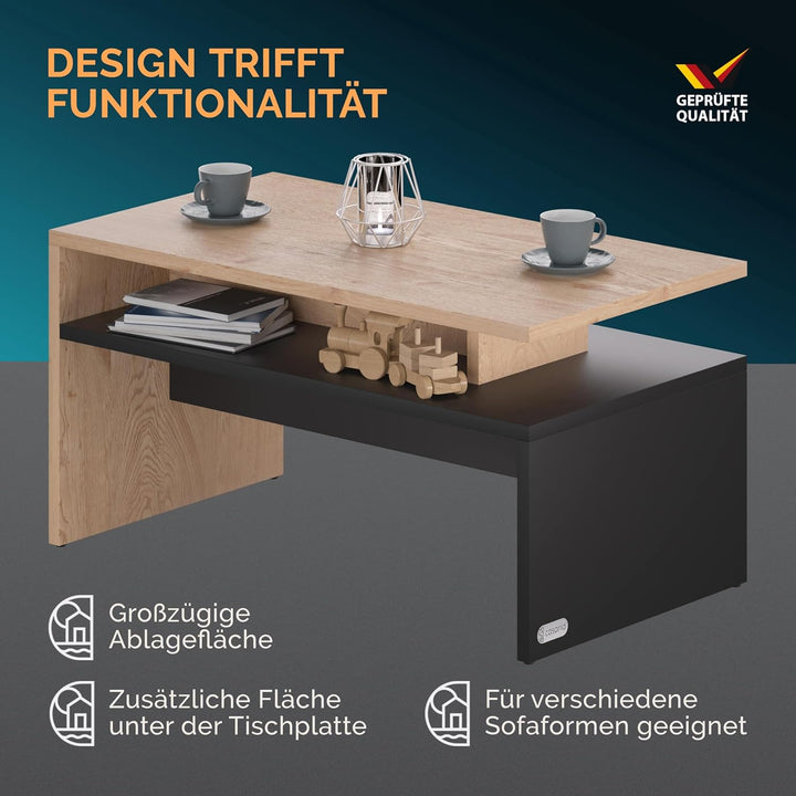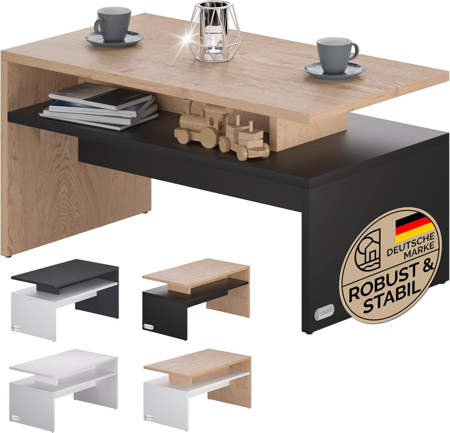 • ROBUST & STANDFEST - Der Kaffeetisch ist aus einer 15mm dicken Spanplatte gefertigt und dadurch sehr stabil, langlebig und kann mit insgesamt 50kg belastet werden. 4 Kunststofffüsse verhindern ein Verkratzen deiner Böden. So schaffst du eine moderne