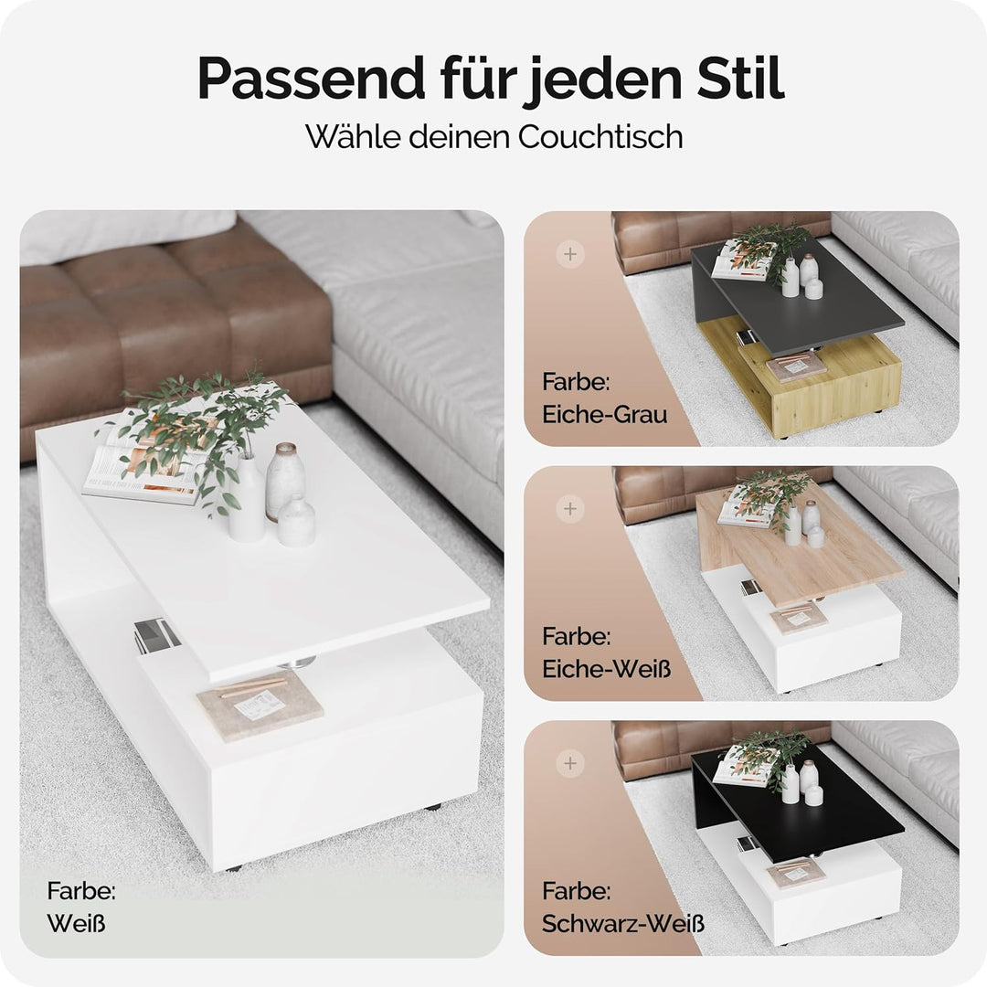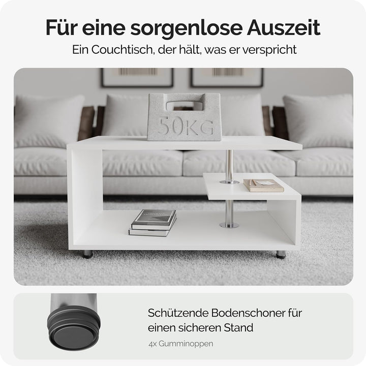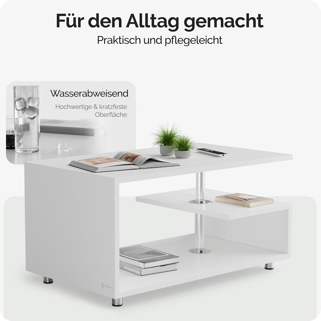 Casaria® Couchtisch Weiss Holz Stauraum Höhenverstellbar Ablage Kratzfest Modern Rechteckig Beistell