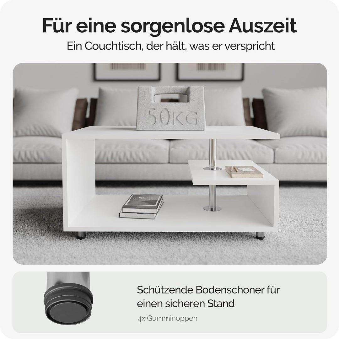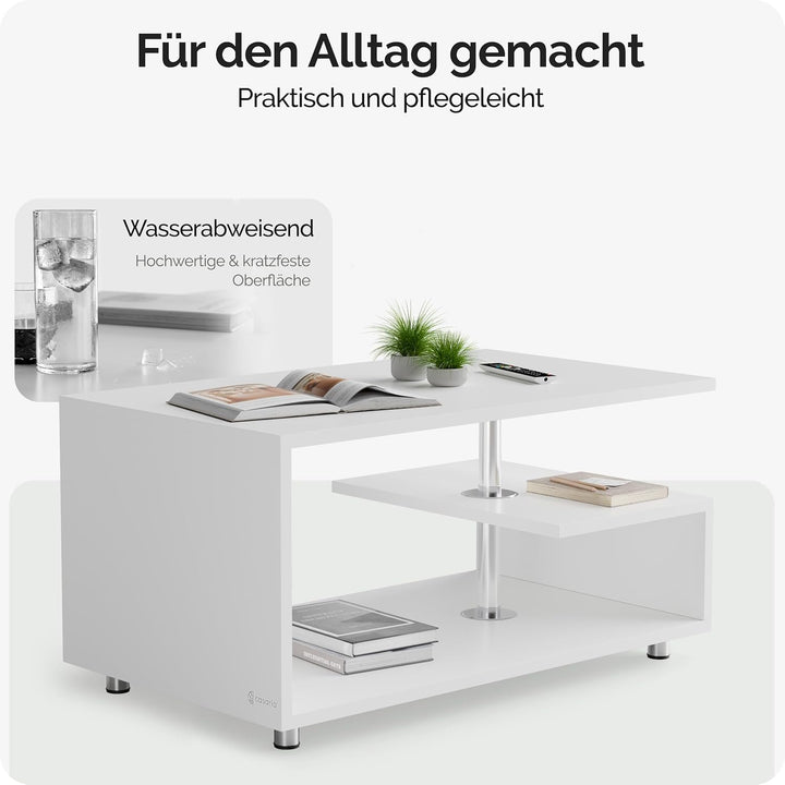 • PFLEGELEICHT - Die kratzfeste Beschichtung des Wohnzimmertisches ist wasserabweisend und lässt sich bei Verschmutzungen einfach mit einem weichen, leicht angefeuchtetem Baumwolltuch abwischen. Dank der mitgelieferten Montageanleitung, ist der Tisch