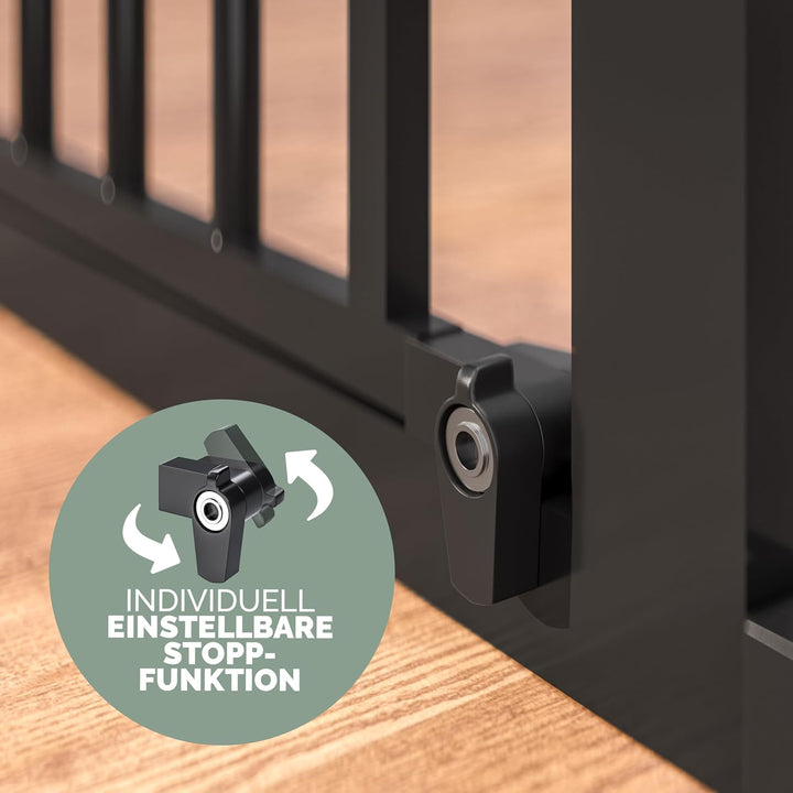 - INDIVIDUELL FIXIERBAR - Das Sicherheitsgitter verfügt über 5 bewegliche Elemente, die flexibel platziert und mit Drehschrauben fixiert werden können. Die Verbinder sind bis zu 270° drehbar, die Wandbefestigung kann um 360° gedreht werden. Der