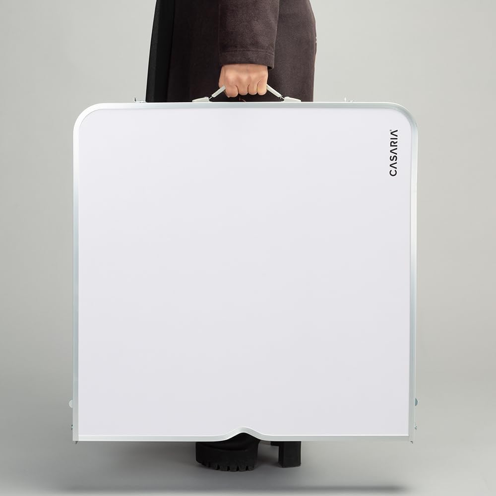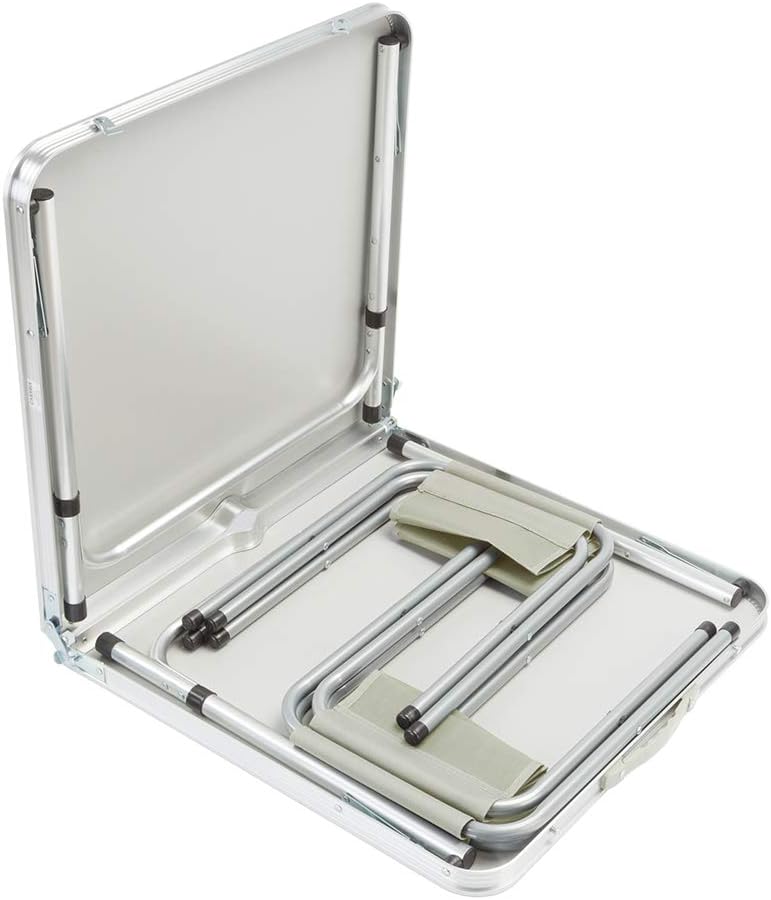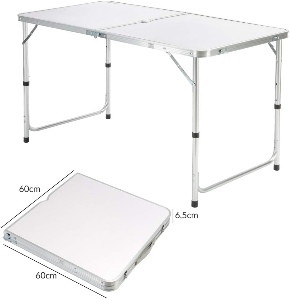 - PLATZSPAREND & TRAGBAR - Aufgrund der Klappfunktion ist das Campingtisch Set auf ein Minimum von ca. 60x60x6,5cm zusammen klappbar und somit besonders platzsparend. Inklusive Tragegriff ist der leichte Koffertisch nun ideal zum Transportieren geeignet.