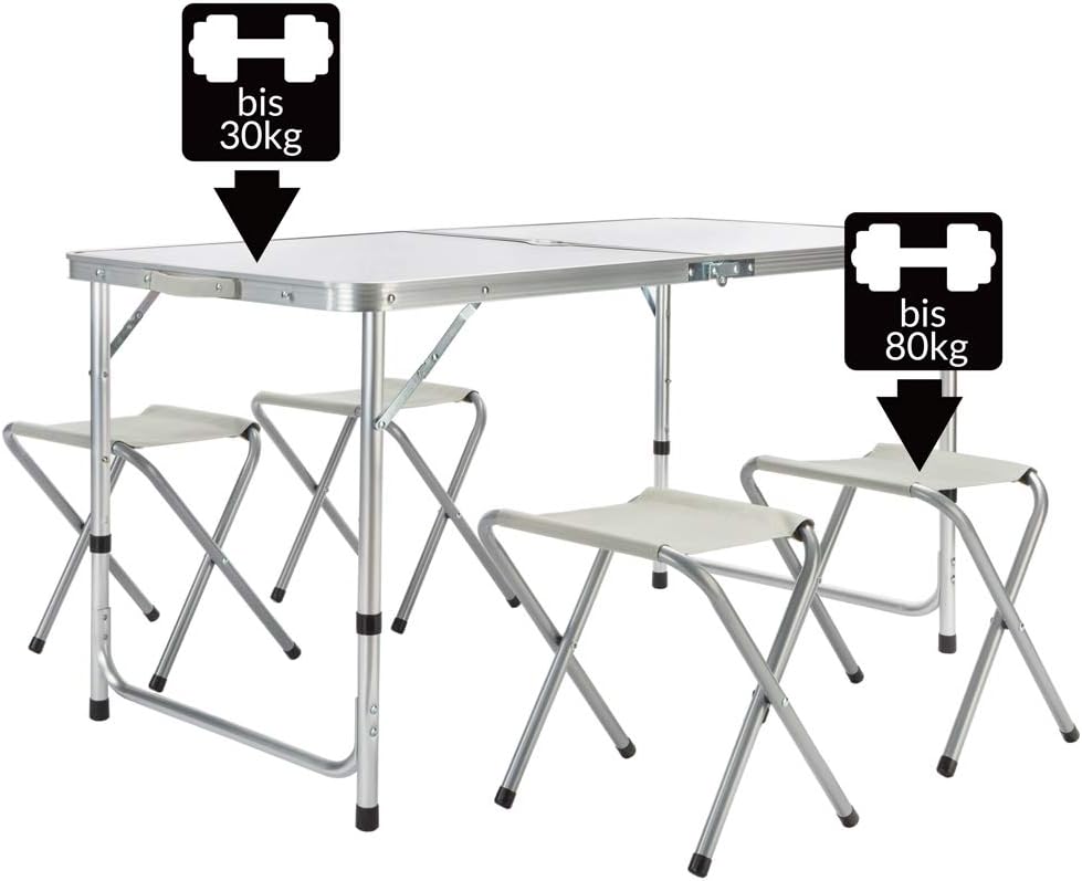 - PERFEKTER BEGLEITER - Der wetterfeste Campingtisch mit Stühlen von CASARIA bietet viel Platz ohne viel Raum in Anspruch zu nehmen. Handlich, leicht und transportabel sind drei der vielen Vorteile des Campingtisches.