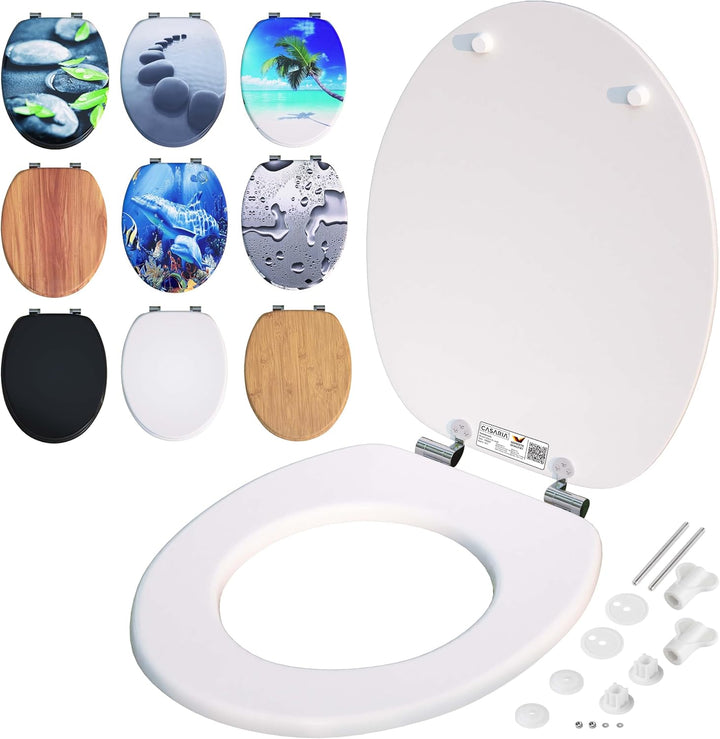 • IMMER PASSEND: Durch die Masse 45,7 x 38,0 cm und der gängigen O-Form, ist der Toilettensitz für alle Standard-Toiletten mit O-Form geeignet. Zudem passt sich der Sitz, dank verschiedener Motive zur Auswahl, optisch in jedes Bad ein und verleiht Ihrem