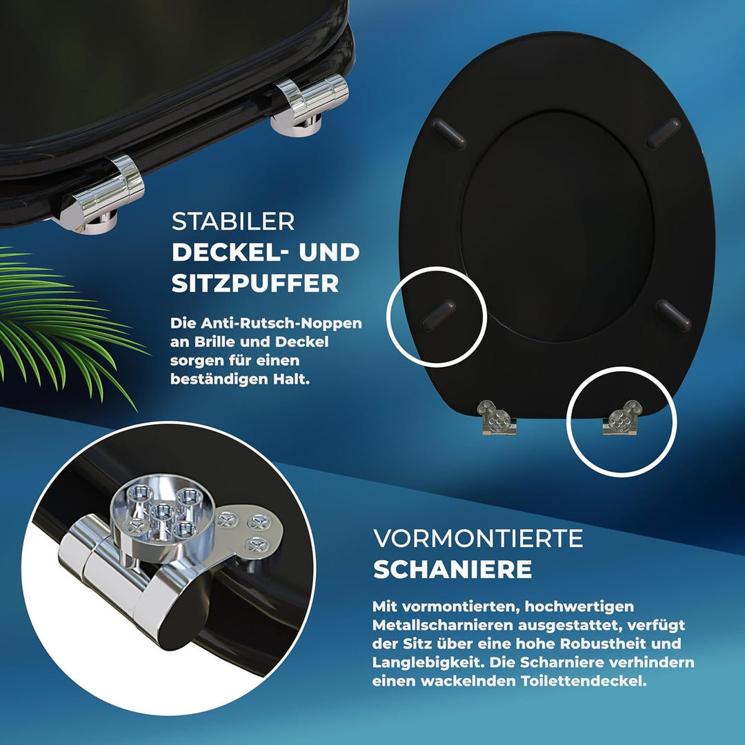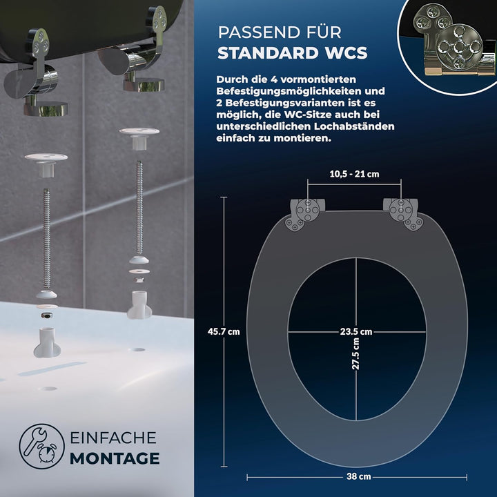 - PASST IMMER - Der WC-Sitz mit Absenkautomatik in O-Form (45,7 x 38 cm) passt auf alle Standard-Toiletten. Der WC-Deckel bietet verschiedene Motive zur Auswahl und verleiht deinem Badezimmer einen eleganten Look - praktisch und stilvoll.