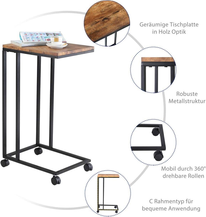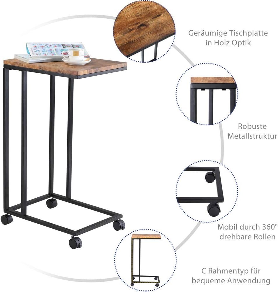 - RUSTIKALES VINTAGE DESIGN - Durch das robuste Metallgestell, dem kippsicheren Standfuss und der geräumigen MDF Tischplatte in Holz-Optik im rustikalen Vintage-Look, ist der Tisch besonders standfest und kann bis zu 20kg belastet werden.
