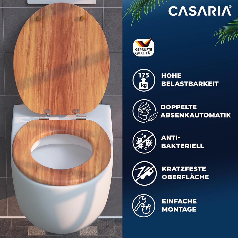 - DOPPELTE ABSENKAUTOMATIK: Herabfallende Klodeckel waren gestern! Der moderne CASARIA Holz WC-Sitz ist mit einer doppelten Absenkautomatik ausgestattet, wodurch sowohl der herunterklappende Deckel als auch die Brille sanft und leise abgefangen werden.