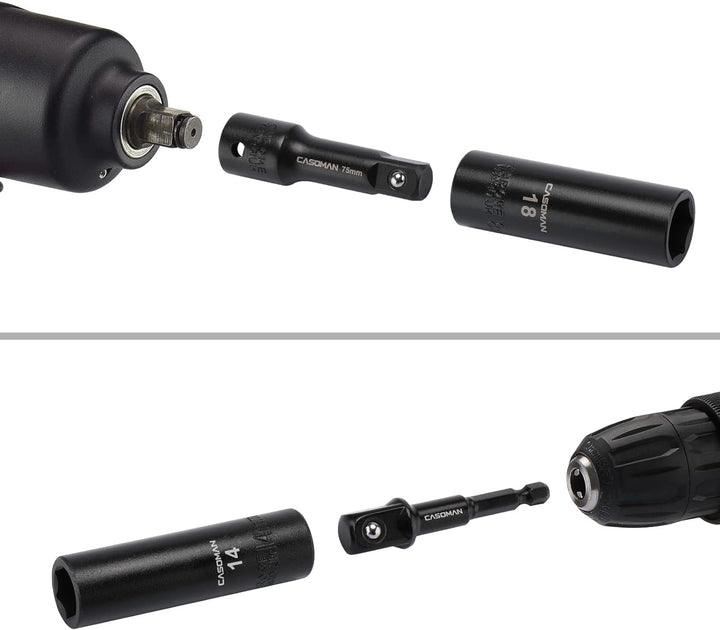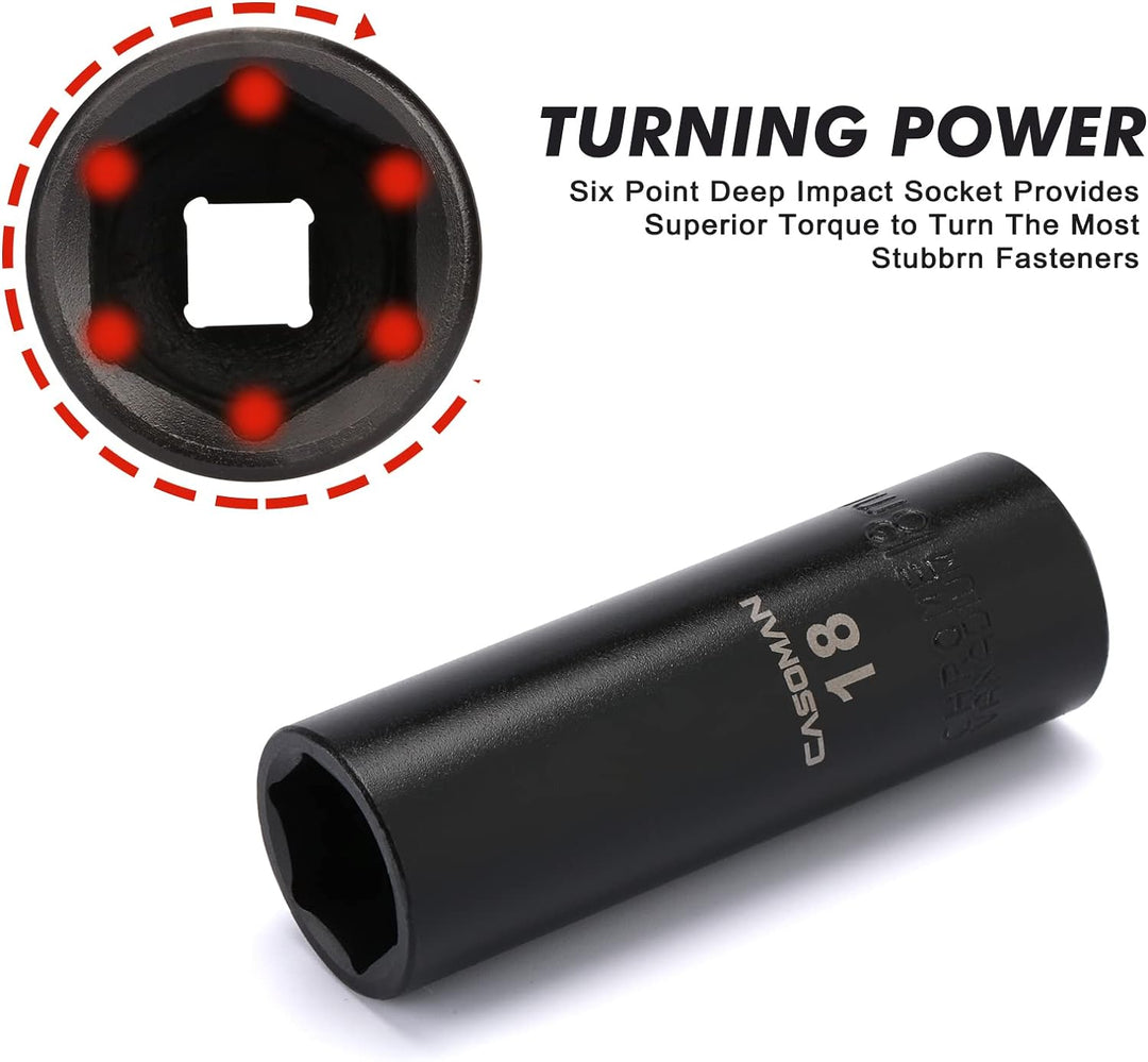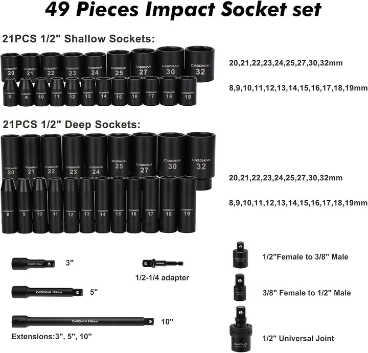 CASOMAN 49PCS 1/2-Inch Drive Impact Socket Set, Deep&Shallow,CR-V, 6 Point, Metric Socket Set, 8mm-3