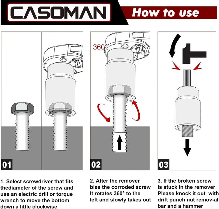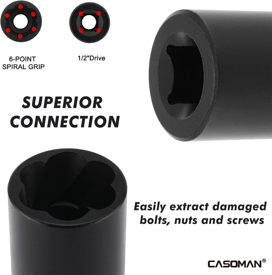 - Einfach zu bedienen, Sie müssen nur einen Hammer verwenden, um das Entfernungswerkzeug auf die beschädigte Mutter zu schlagen, dann wählen Sie den 1/2 Zoll Vierkantantrieb Schraubenschlüssel, um die Mutter zu lösen, um diese verrosteten Muttern zu