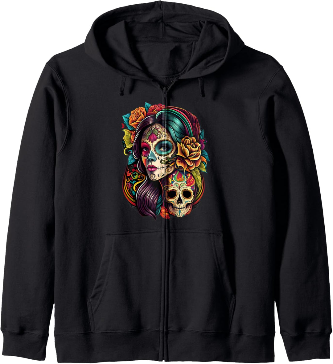 Catrina Calavera Schädel Dame Skelett Kapuzenjacke