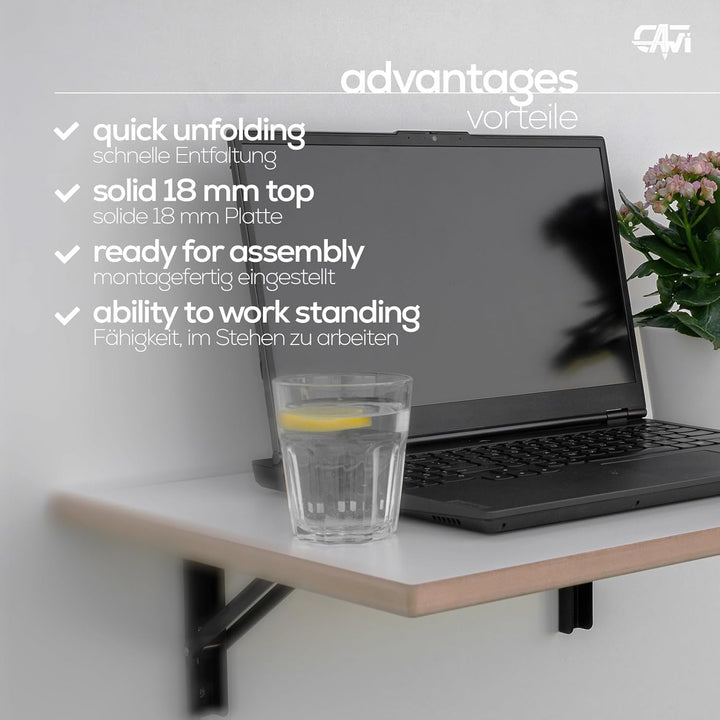 - Schwebender Schreibtisch: Unser Wandklapptisch kann auch als schwebender Schreibtisch genutzt werden, ideal für Homeoffice.