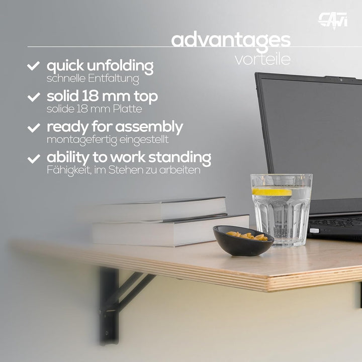 - Schwebender Schreibtisch: Unser Wandklapptisch kann auch als schwebender Schreibtisch genutzt werden, ideal für Homeoffice.