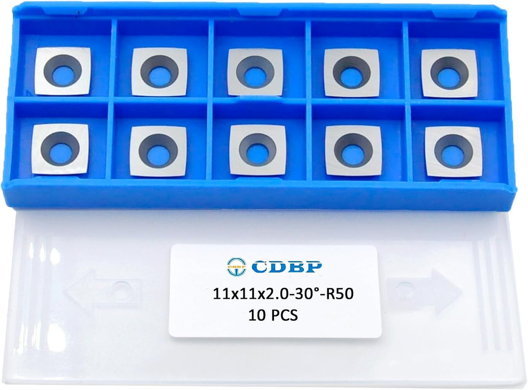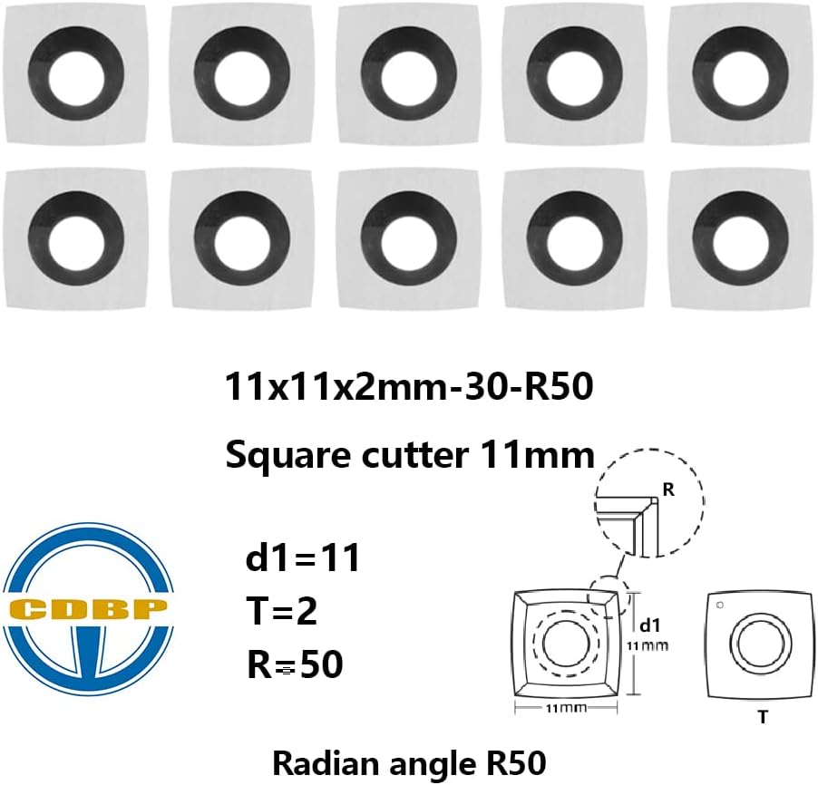 - Grösse: 11 mm Länge x 11 mm Breite x 2,0 mm Dicke, 4 Wendeschneidplatten R50, 30 ° Schneidwinkel, ein Senkloch, Finisher Hollower Drechselbank oder Holzbearbeitungshobel usw.