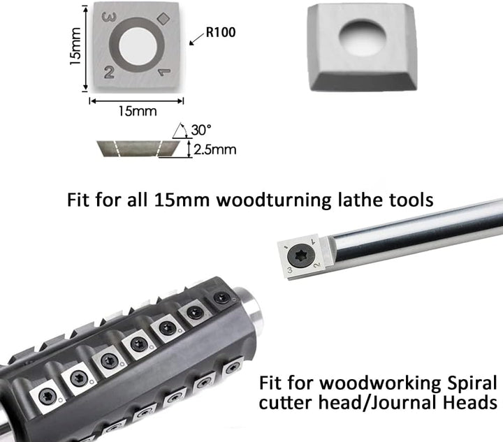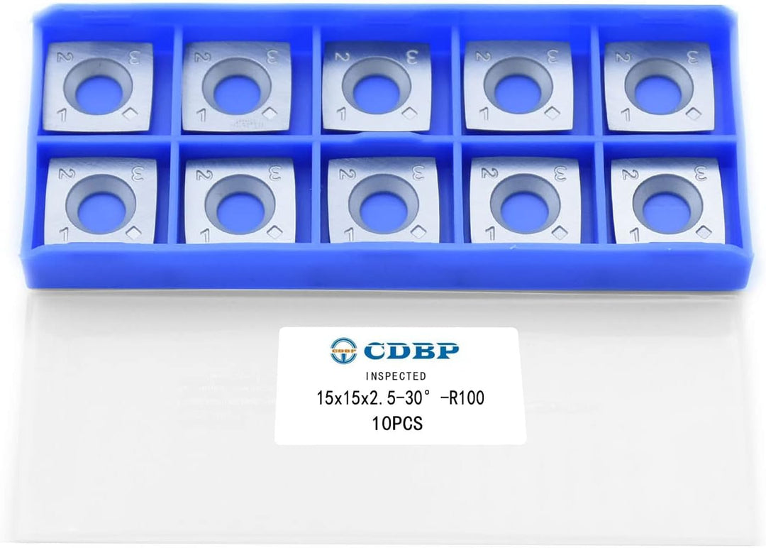 - Standardgrösse: 15 mm (Länge) x 15 mm (Breite) x 2,5 mm (Dicke), R100–30 ° (Schnittwinkel) mit 15,2 cm Radiuskanten